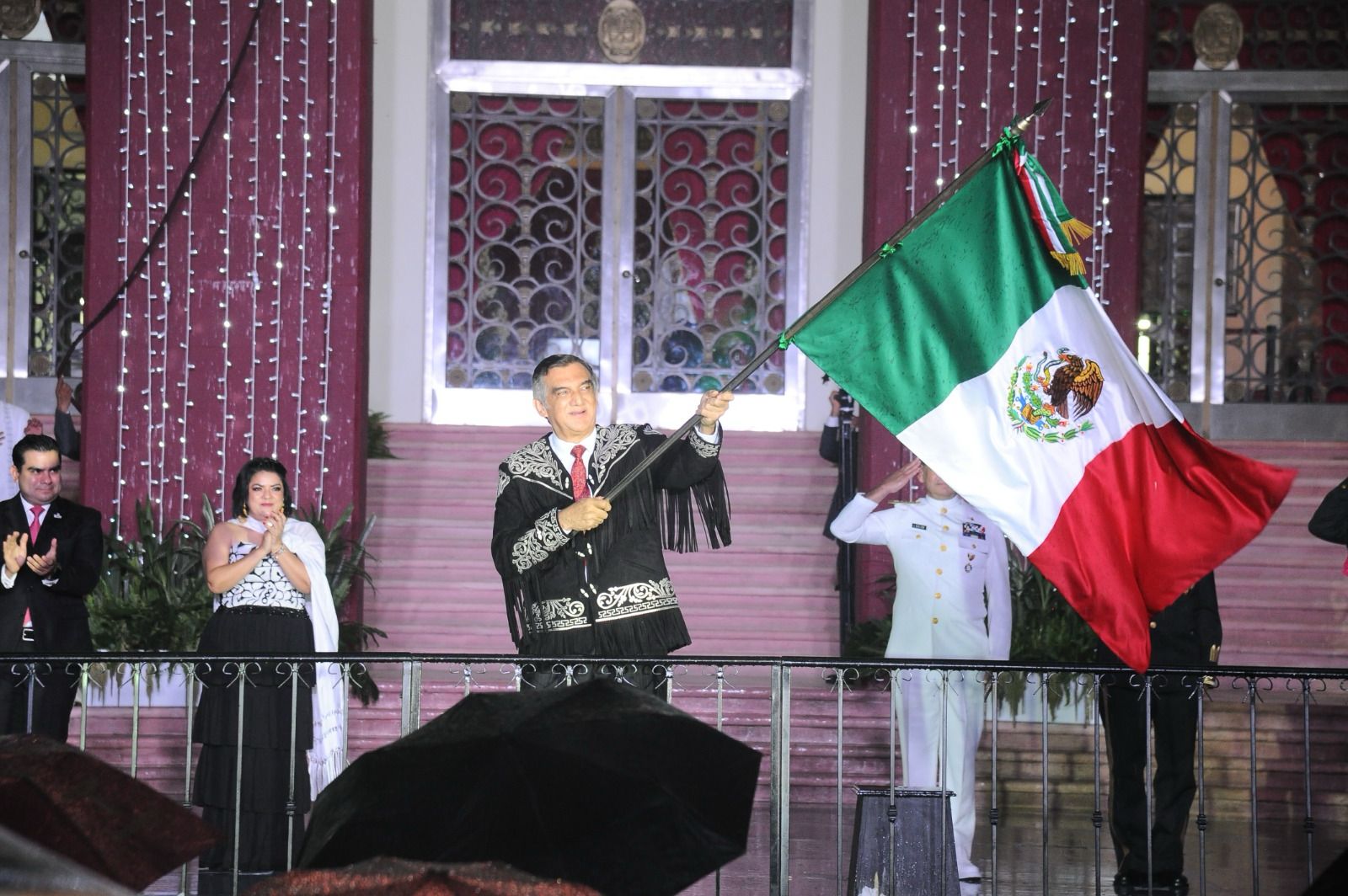 En una noche de fiesta, ante una abarrotada Plaza Juárez, el gobernador Américo Villarreal, acompañado por su esposa, la presidenta del DIF Estatal, doctora María de Villarreal, y los titulares de los Poderes Legislativo y Judicial, salió al pórtico principal de Palacio de Gobierno. Tras recibir la Bandera Nacional de manos de la Escolta del 77 Batallón de Infantería, evocó el llamado del Padre de la Patria, Miguel Hidalgo, al pueblo de Dolores aquella madrugada del 16 de septiembre de 1810.