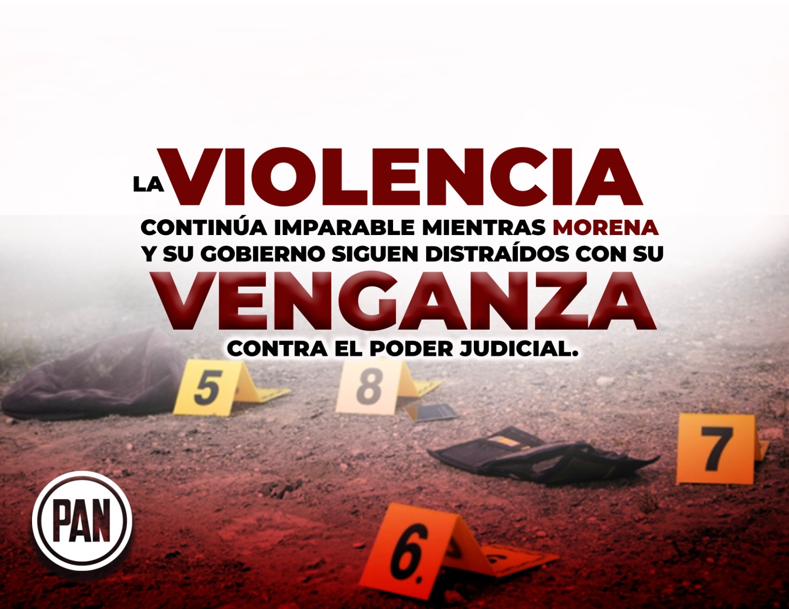 Criticó que mientras la violencia sigue en aumento en todo el país, tanto Morena desde el Congreso y Sheinbaum desde el Gobierno continúan con la destrucción del poder Judicial por venganza ante la autonomía e independencia de las resoluciones de los juzgadores.