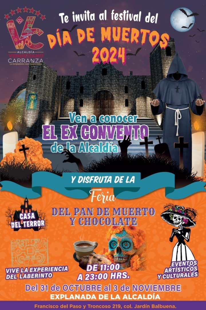 Evelyn Parra Álvarez, alcaldesa de Venustiano Carranza, inaugurará el próximo jueves 31 de octubre el Festival del Día de Muertos 2024 en la explanada de la demarcación, en la que los asistentes podrán disfrutar del recorrido por un convento del siglo XVI, el panteón con temática prehispánica y una experiencia extrema al recorrer un enorme laberinto gigante y adentrarse en la Casa del Terror, entre otras actividades que se realizarán este fin de semana como ofrendas y una feria mecánica.