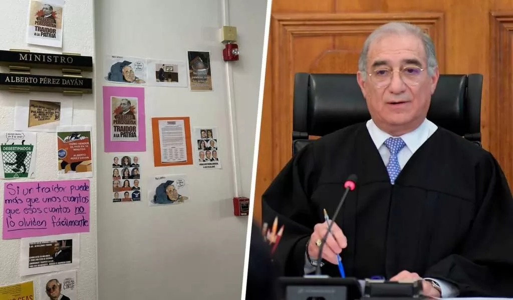 El ministro Alberto Pérez Dayán, integrante de la Suprema Corte de Justicia de la Nación (SCJN), amaneció este jueves bajo un escenario de críticas. La puerta de su oficina fue cubierta con carteles en los que se le acusa de “traidor” debido a su voto decisivo en contra del proyecto del ministro Juan Luis González Alcántara Carrancá. Este proyecto buscaba invalidar artículos clave de la reforma judicial impulsada recientemente.