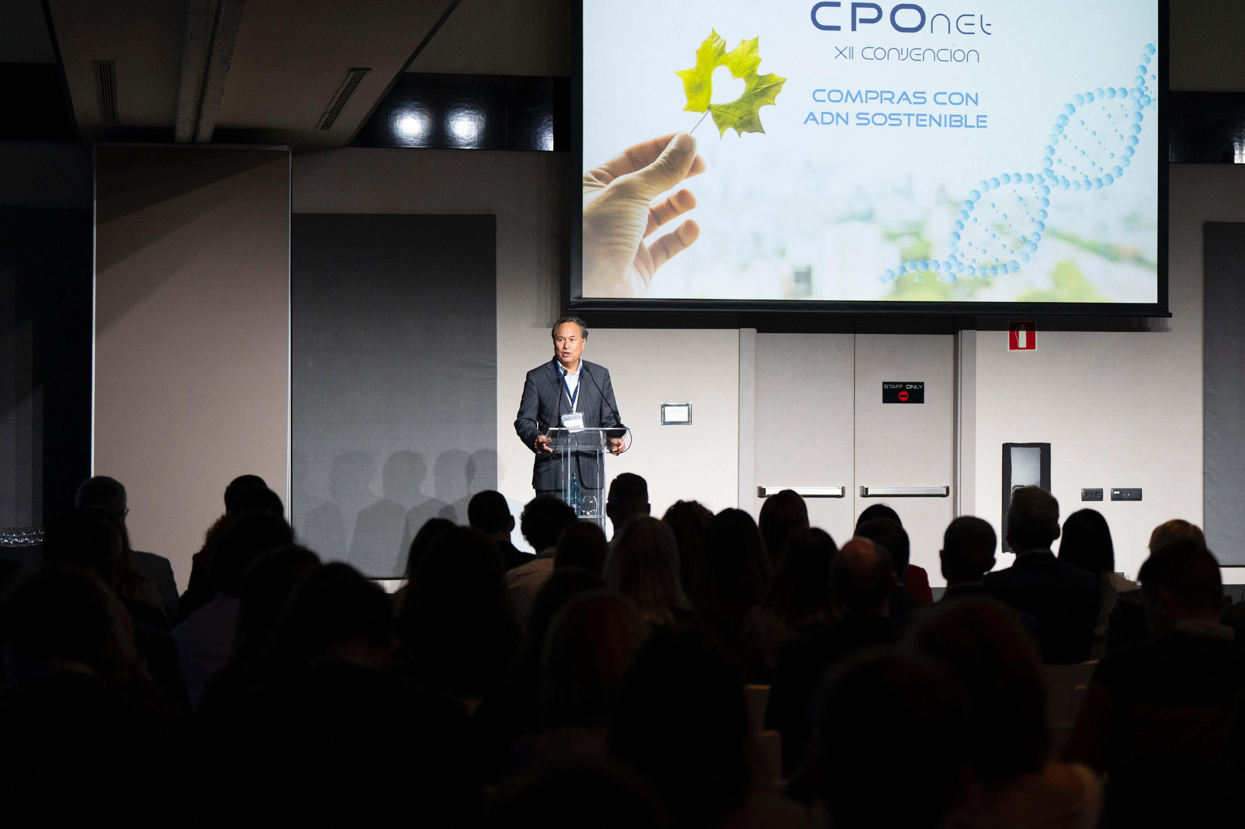 Desde CPOnet, Rocío Fernández Artime, directora de ESG, presentó la ponencia «Compro ergo impacto», en la que destacó el rol de la función de Compras en la reducción del CO₂ empresarial.