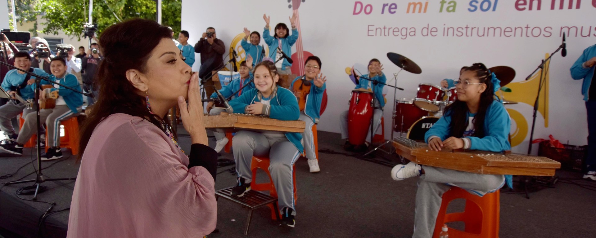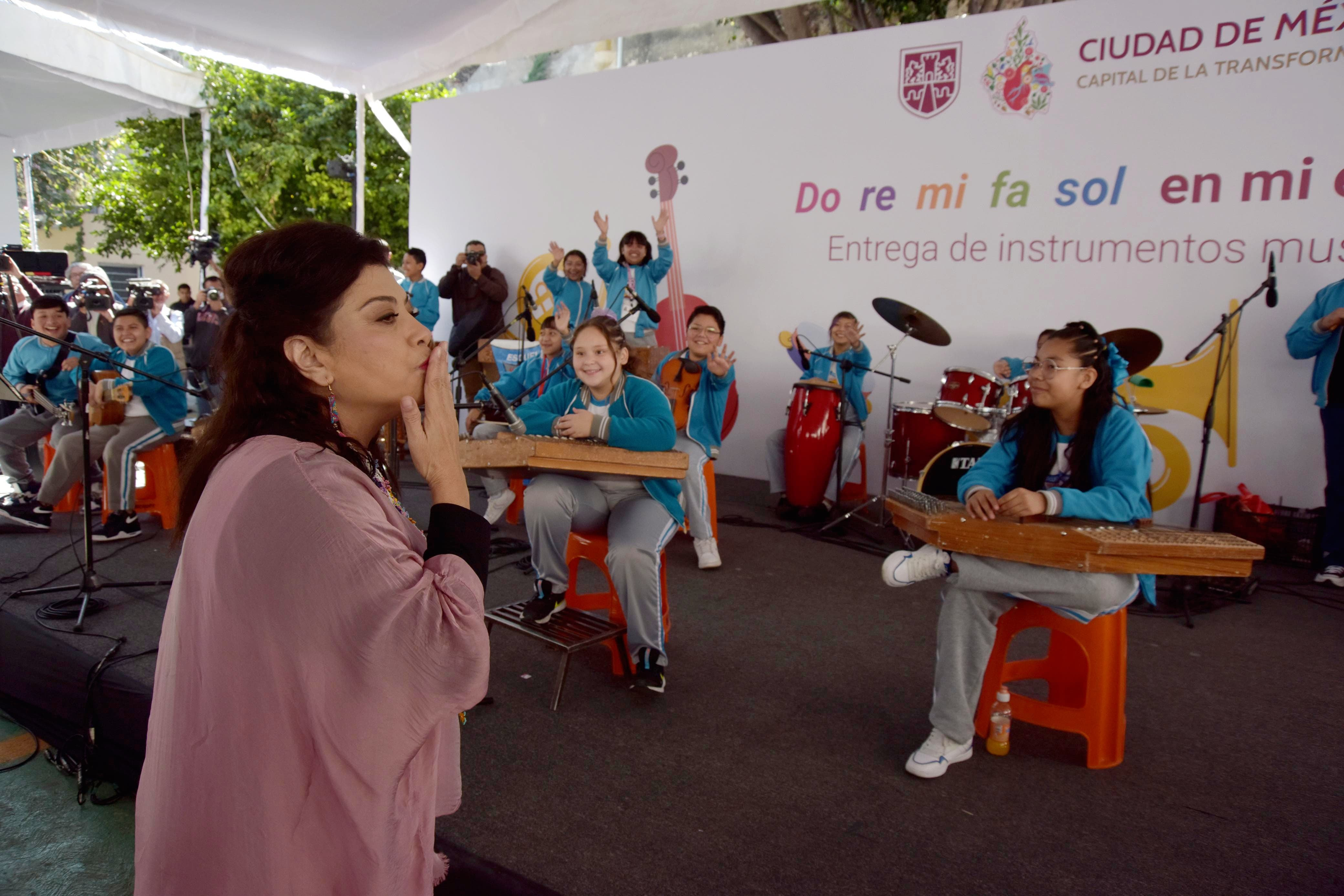 “Convoco a todas las escuelas primarias y secundarias públicas que quieran tener los instrumentos musicales, que se anoten, porque vamos a abrir una convocatoria para las escuelas que quieran que les llevemos los instrumentos musicales, más los maestros o maestras de música, ¿de acuerdo? Cuando las niñas y los niños se entusiasman y aprenden un arte, en este caso música, cambia la vida y eso es lo que queremos. Queremos cambiar la vida de la población infantil y juvenil de la ciudad de México”, remarcó.