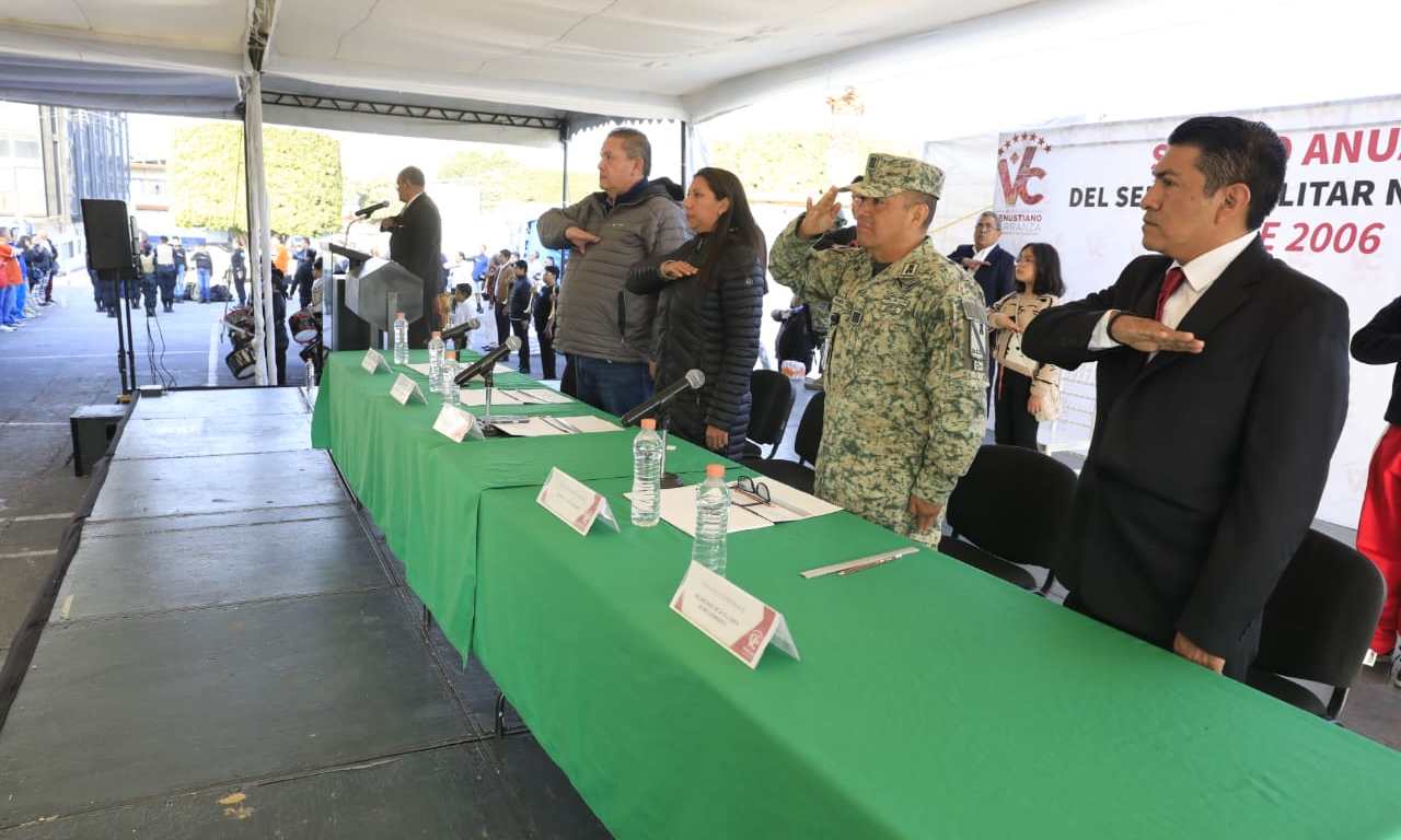 Evelyn Parra Álvarez, alcaldesa de Venustiano Carranza, ofreció un apoyo económico a los jóvenes que resultaron sorteados con bola blanca durante el Sorteo Nacional Militar Clase 2006 y Remisos que se llevó a cabo en la explanada de la alcaldía.