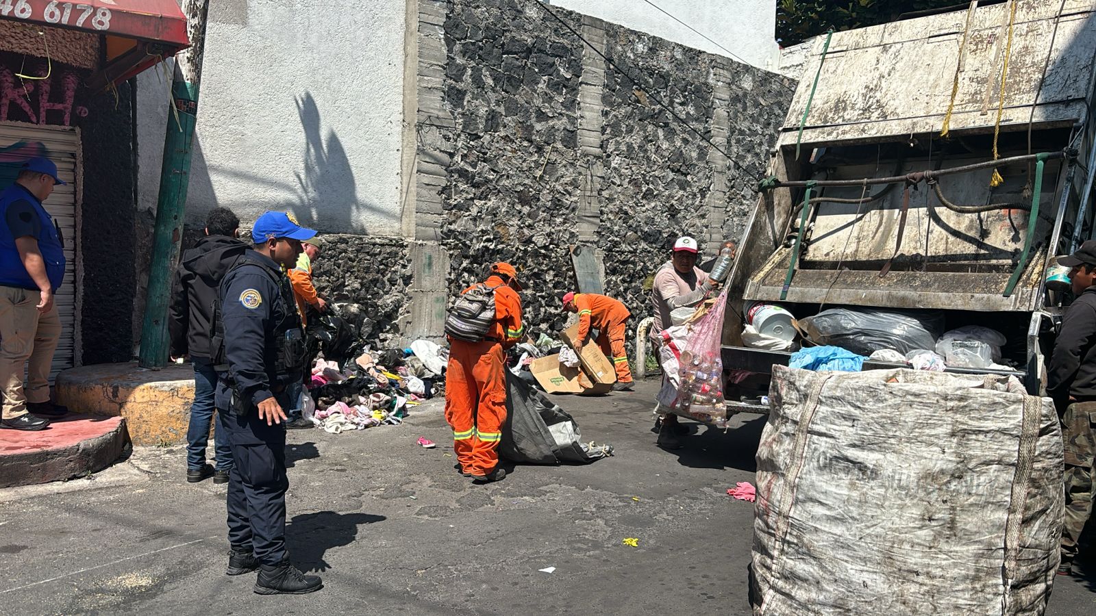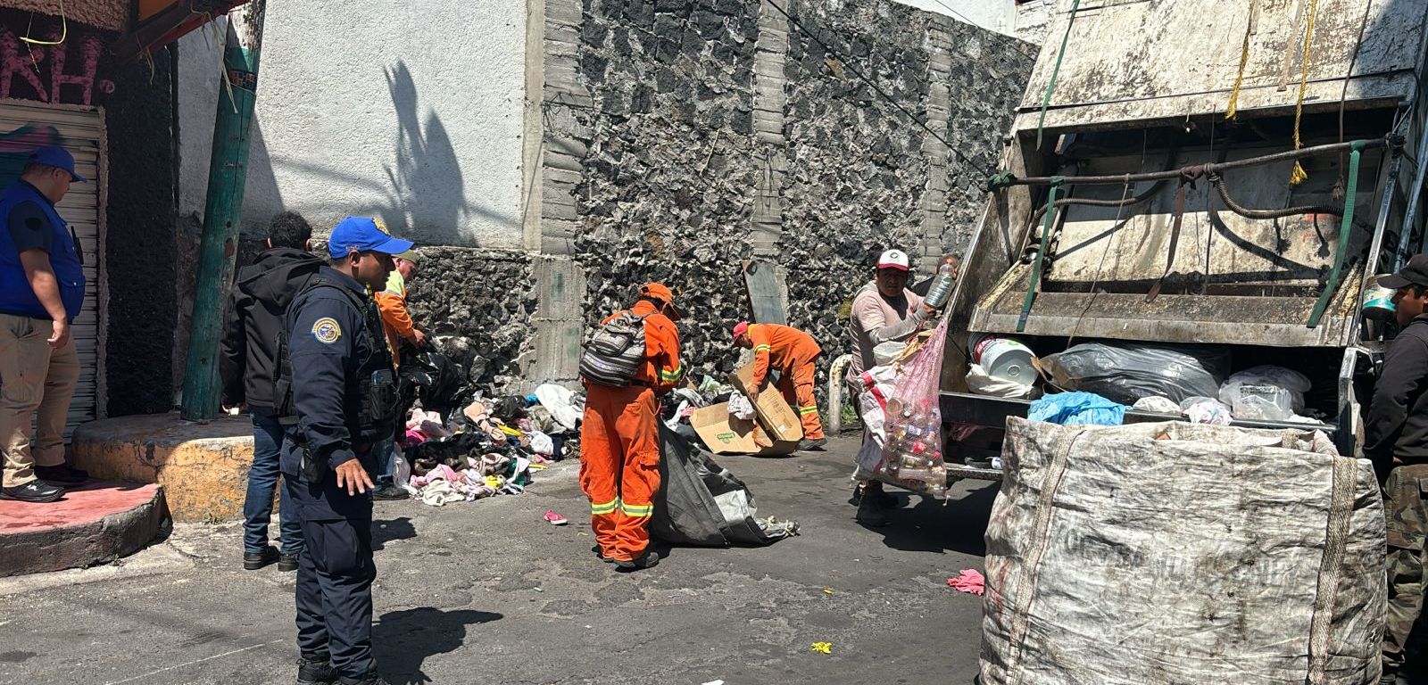 La recuperación de espacios en la alcaldía pasa también por el retiro de tiraderos de basura clandestinos, como el que se llevó a cabo en avenida Pedro Henríquez Ureña y calle Copal, y con el apoyo y traslado a personas en situación de calle a albergues seguros, con agua y alimentos calientes.