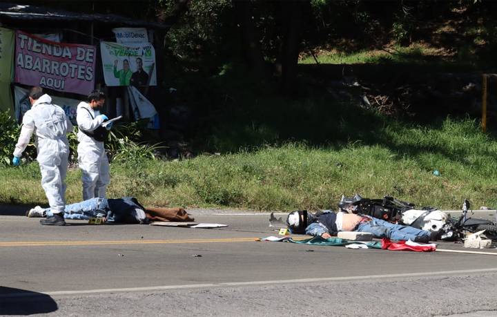 Testigos declararon que los motociclistas descendían a alta velocidad cuando la curva en la pendiente les hizo perder el control de sus vehículos, provocando el choque frontal contra el microbús.