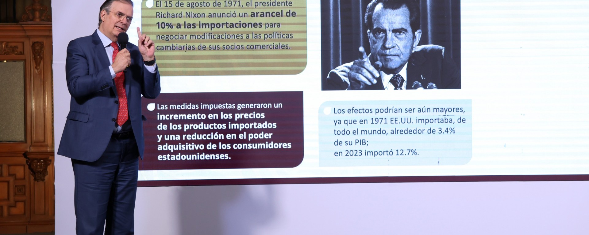 El secretario de Economía, Marcelo Ebrard Casaubón, aseguró que en caso de que Donald Trump imponga el 25 por ciento de cuotas arancelarias, Estados Unidos se daría “un balazo en el pie”.