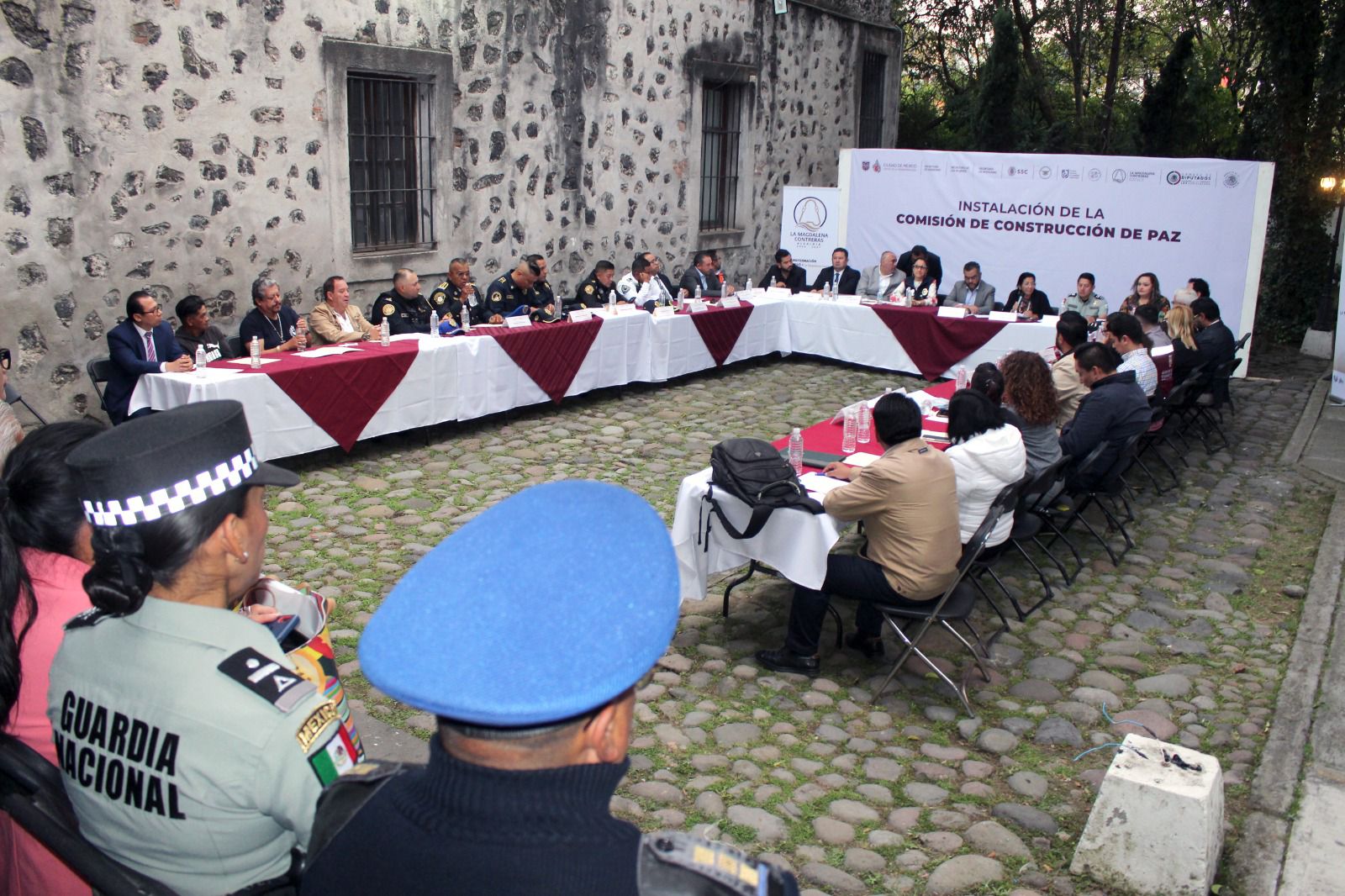 En el evento se reunieron diversas autoridades, de la Secretaría de Mujeres, Secretaría de Seguridad Ciudadana (SSC), Guardia Nacional, Fiscalía General de Justicia, representantes religiosos, grupos de asociaciones civiles, deportistas, directivos académicos y directores generales de la alcaldía, para llevar a cabo la instalación de la mesa de trabajo en favor de la cultura de paz.