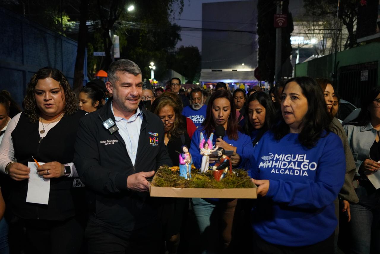 Acompañado por vecinos, el alcalde celebró en la colonia Pensil, con una peregrinación, posada y piñatas.