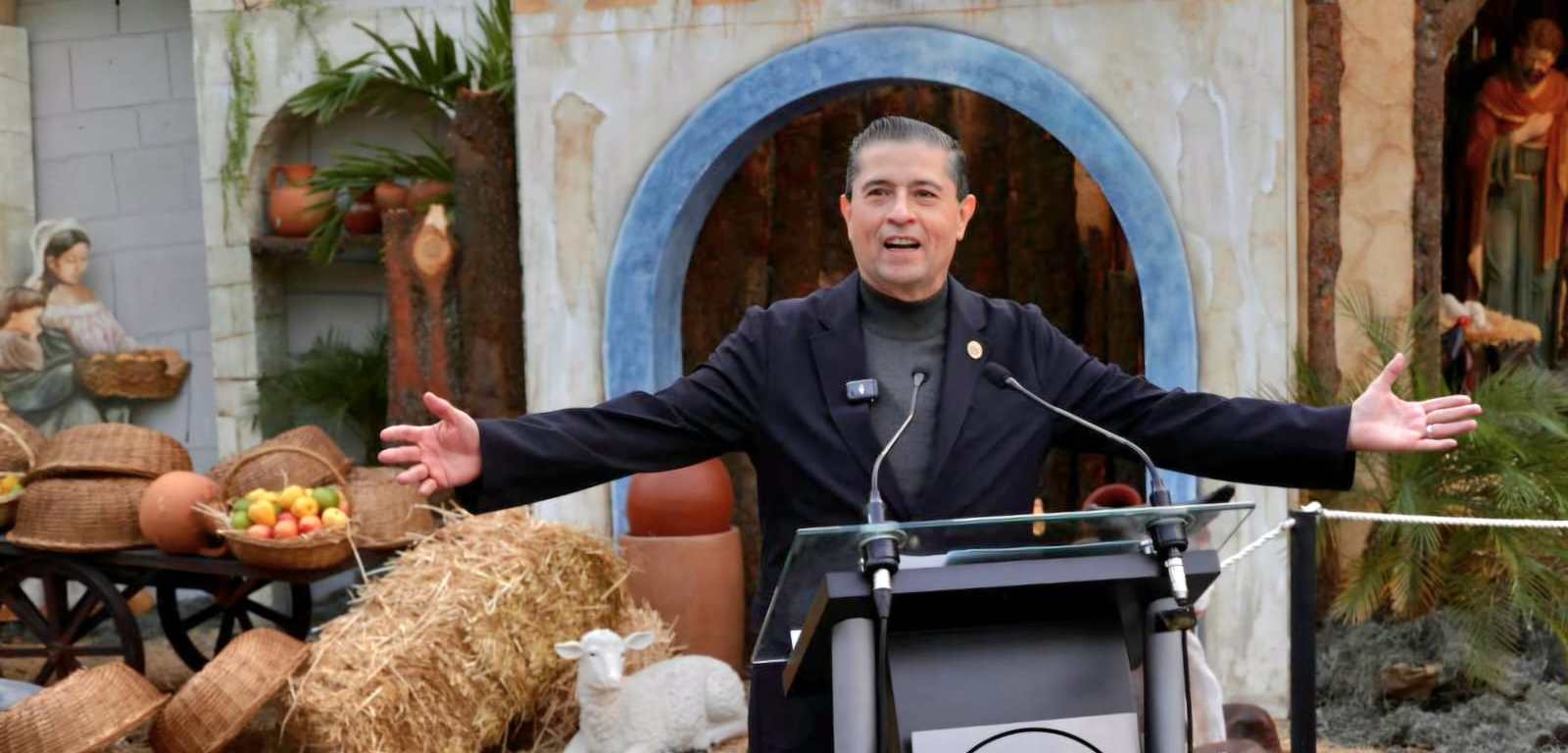 Acompañado de su esposa y de sus dos hijas, así como de la directora general de Cultura, Hilda Trujillo Soto, el alcalde dijo que en este montaje se exhibe una de las tradiciones más populares y reconocidas en el mundo, por ello, este Belén cobra un significado especial: