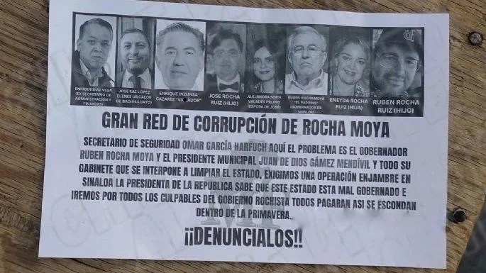 Los volantes contenían mensajes que aludían a una “gran red de corrupción” supuestamente liderada por el mandatario estatal. En el texto se mencionó a su hija, Eneyda Rocha, presidenta del Sistema DIF Sinaloa, así como a sus hermanos José Rocha Ruiz y Rubén Rocha Ruiz.