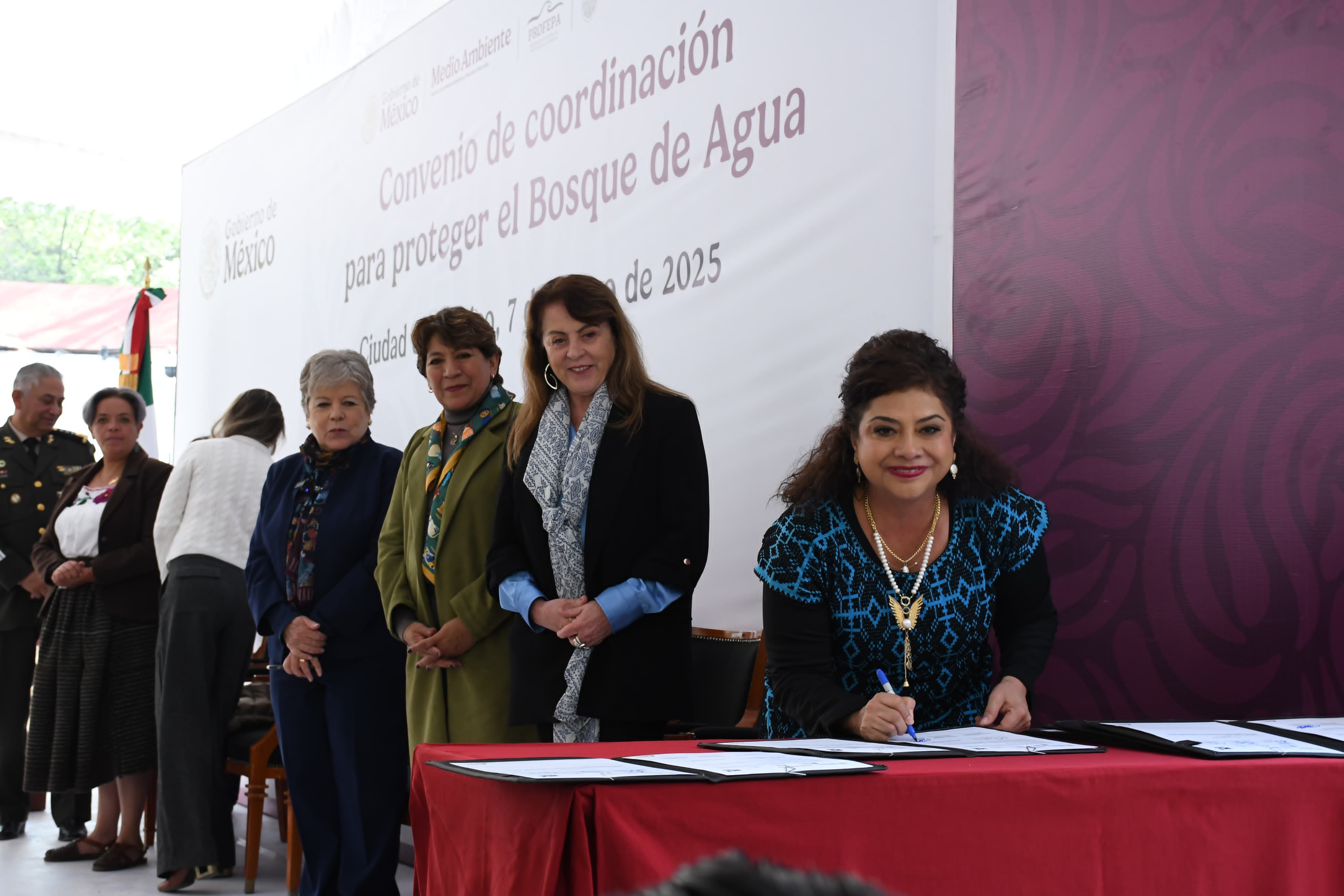 Clara Brugada Molina, jefe de gobierno, firmó el Convenio de Coordinación Interinstitucional para proteger el Bosque de Agua, que se llevó a cabo entre la Secretaría de Medio Ambiente y Recursos Naturales (Semarnat), la Procuraduría Federal de Protección al Ambiente (Profepa) y los gobiernos de Morelos y el estado de México. Esta acción, dijo la mandataria capitalina, es la primera que se realiza en beneficio de este importante recurso.