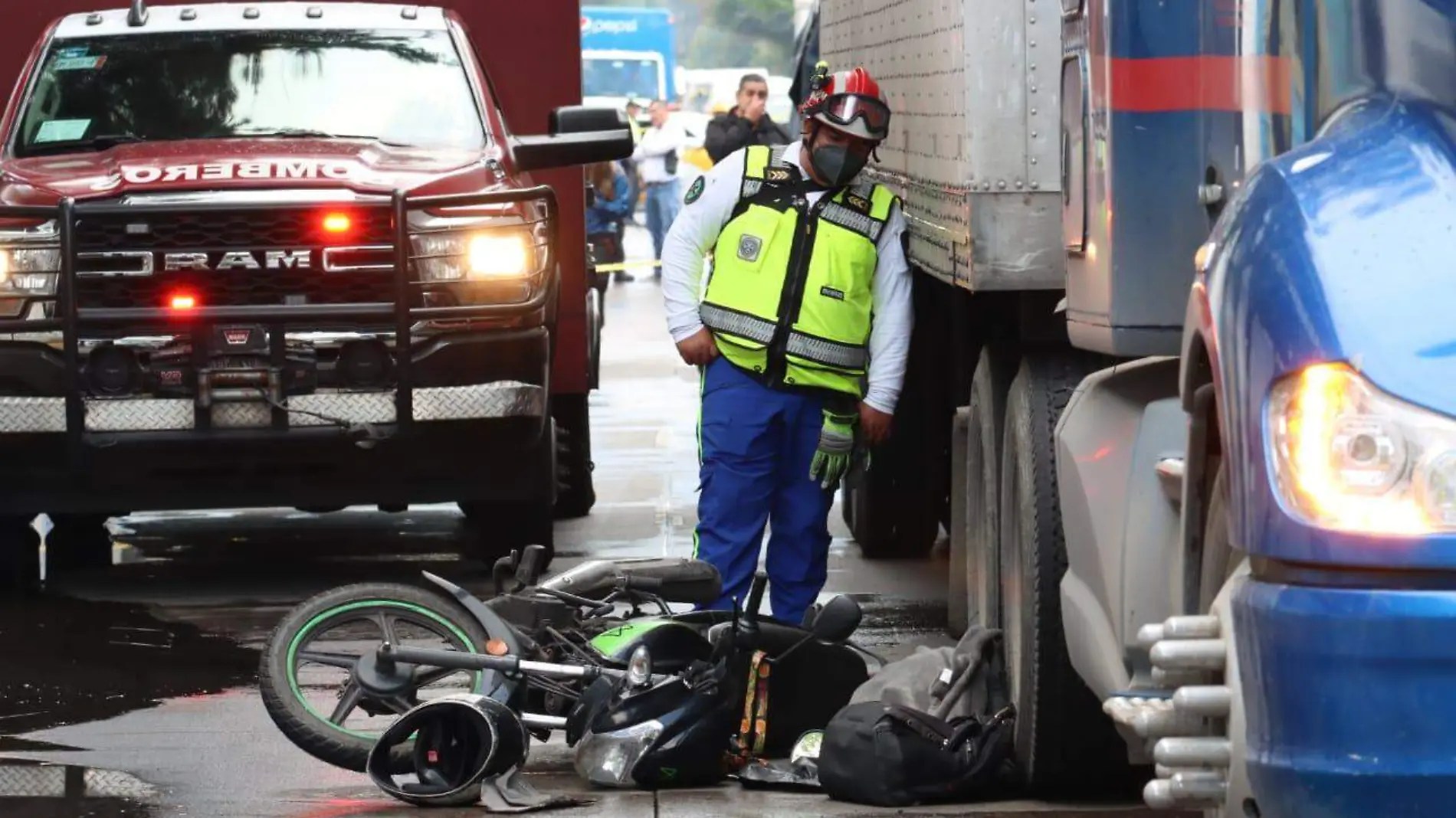 Por su parte, una unidad del Escuadrón de Rescate y Urgencias Médicas (ERUM) y personal del Heroico Cuerpo de Bomberos trabajaron para rescatar el cuerpo, que quedó atrapado debajo de las llantas del tráiler.