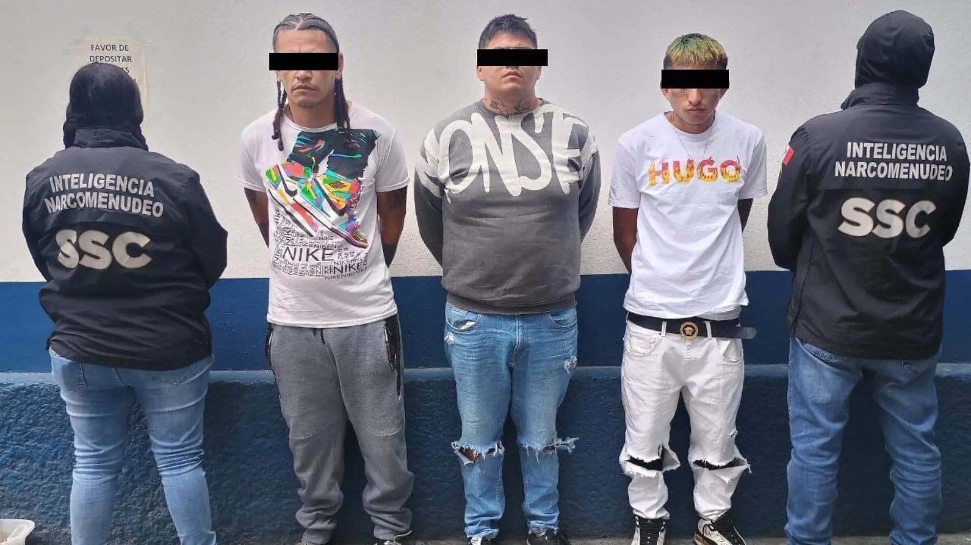 Elementos de la Secretaría de Seguridad Ciudadana patrullaban el área cuando detectaron a los tres hombres intercambiando pequeñas bolsas de plástico con contenido sospechoso. Los policías decidieron intervenir para realizar una inspección preventiva.