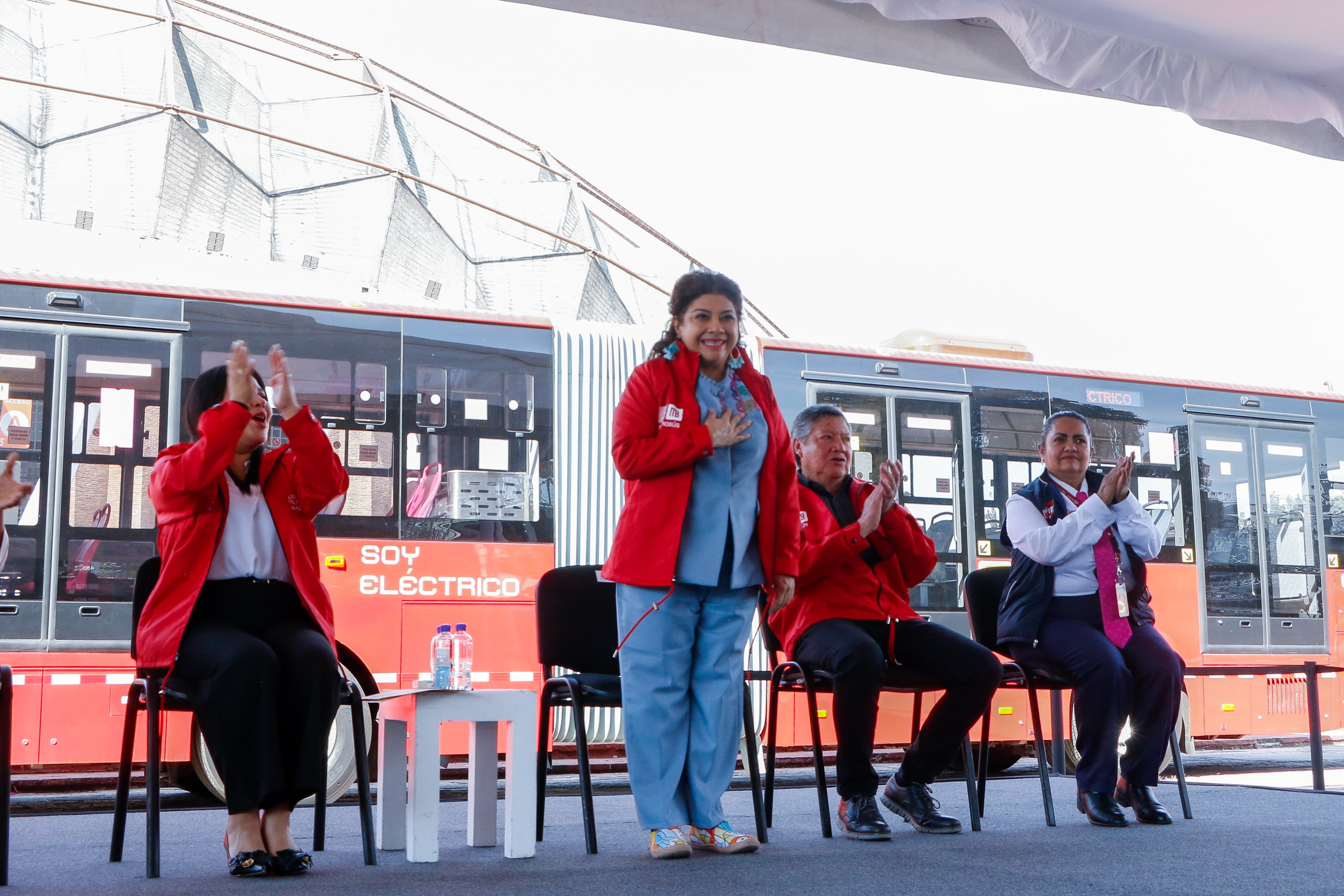 Clara Brugada Molina, jefe de gobierno de la ciudad de México, dio el banderazo de salida de 26 nuevas unidades eléctricas que se integran a las flotillas de las líneas 2, 5 y 6 del Metrobús, y reiteró su compromiso de crear dos rutas nuevas de este sistema de transporte, la ampliación de la línea 7 y la construcción de 5 líneas más del Cablebús.