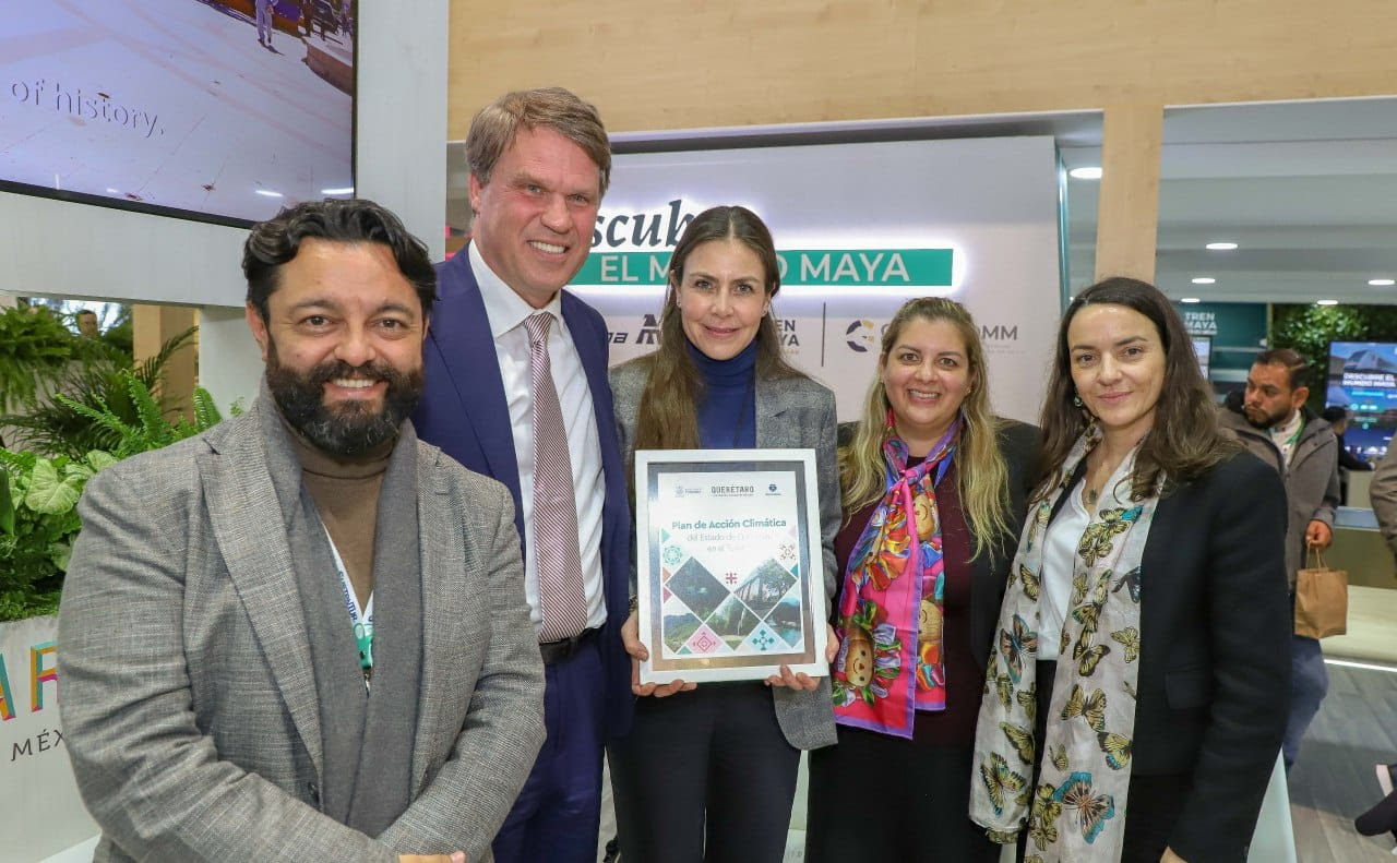 La Secretaria de Turismo entregó a la ONU Turismo, representada por Dirk Glazeer, director de Desarrollo de Sustentabilidad en el turismo, y Virginia Fernández, coordinadora del programa de Sustentabiidad Turística y Resiliencia; el Plan de Acción Climática del estado de Querétaro en el Turismo; el cual contempla acciones para el combate al cambio climático, acciones de sustentabilidad, cuidado del medio ambiente y la puesta en práctica de acciones de turismo social.