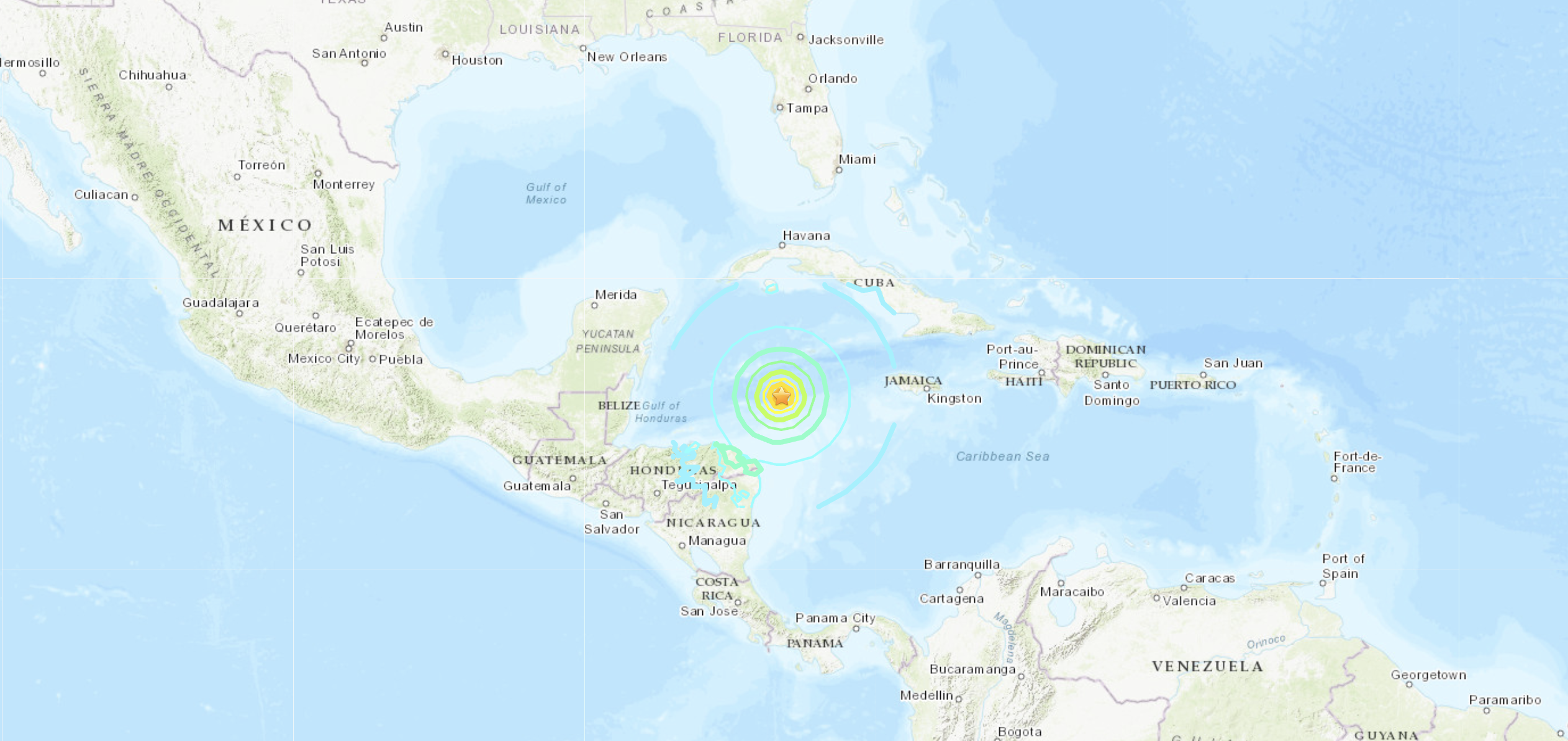 El Servicio Geológico de los Estados Unidos (USGS) reportó un sismo de magnitud 7.6 al oeste de George Town, Islas Caimán y al norte de Honduras, este 8 de febrero de 2025 a las 18:23 horas, tiempo local.