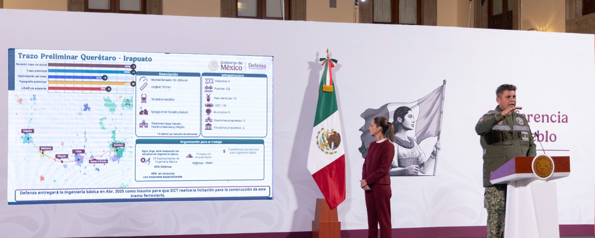 La Sedena tiene previsto entregar la ingeniería básica para los tramos Querétaro – Irapuato y Saltillo – Nuevo Laredo en abril de 2025, lo que permitirá a la SICT iniciar los procesos de licitación para la construcción de estos tramos.