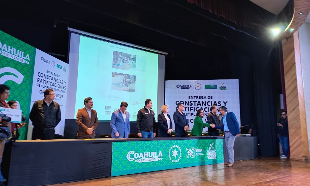 La Secretaría de Medio Ambiente del Gobierno del Estado de Coahuila entregó a la Acería Ramos la constancia y ratificación de cumplimiento como Oficina Verde en el Auditorio Tecnológico ITS.