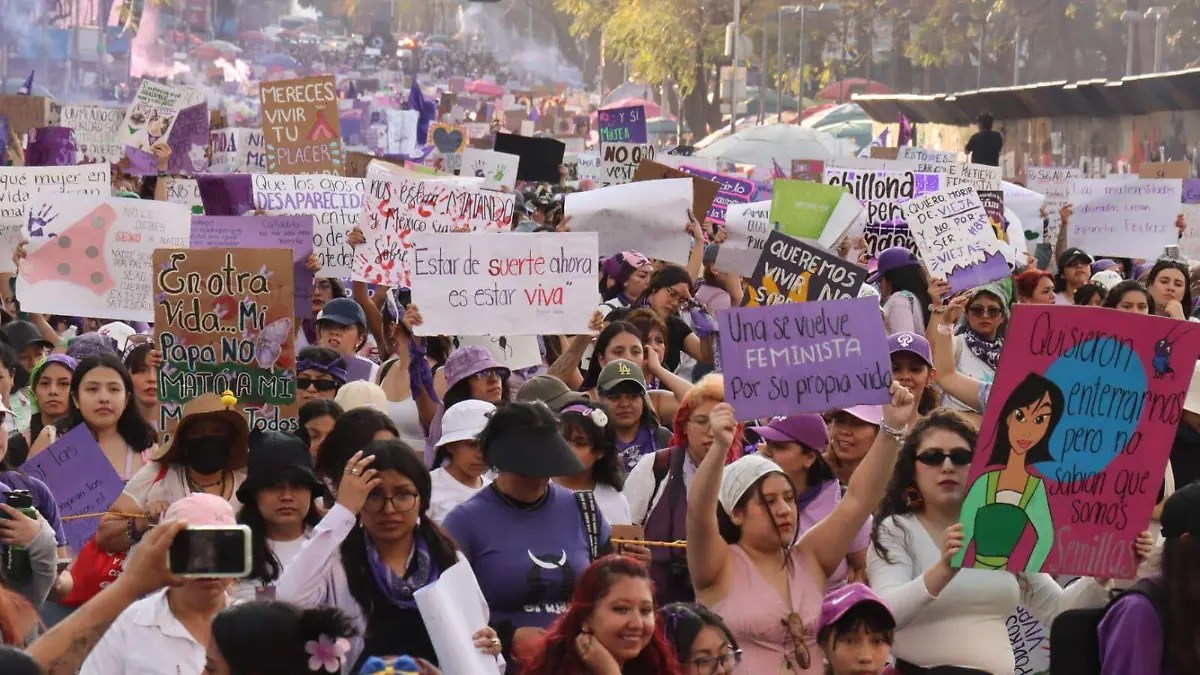 Desde las 11:00 horas, mujeres de distintas edades y colectivos se concentraron en Paseo de la Reforma para marchar hacia el Zócalo capitalino. Durante el trayecto, se observaron pancartas con consignas contra la violencia de género y el feminicidio.