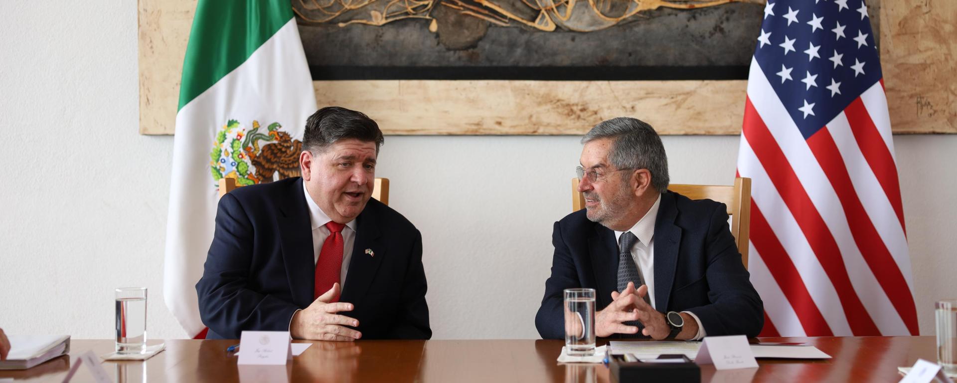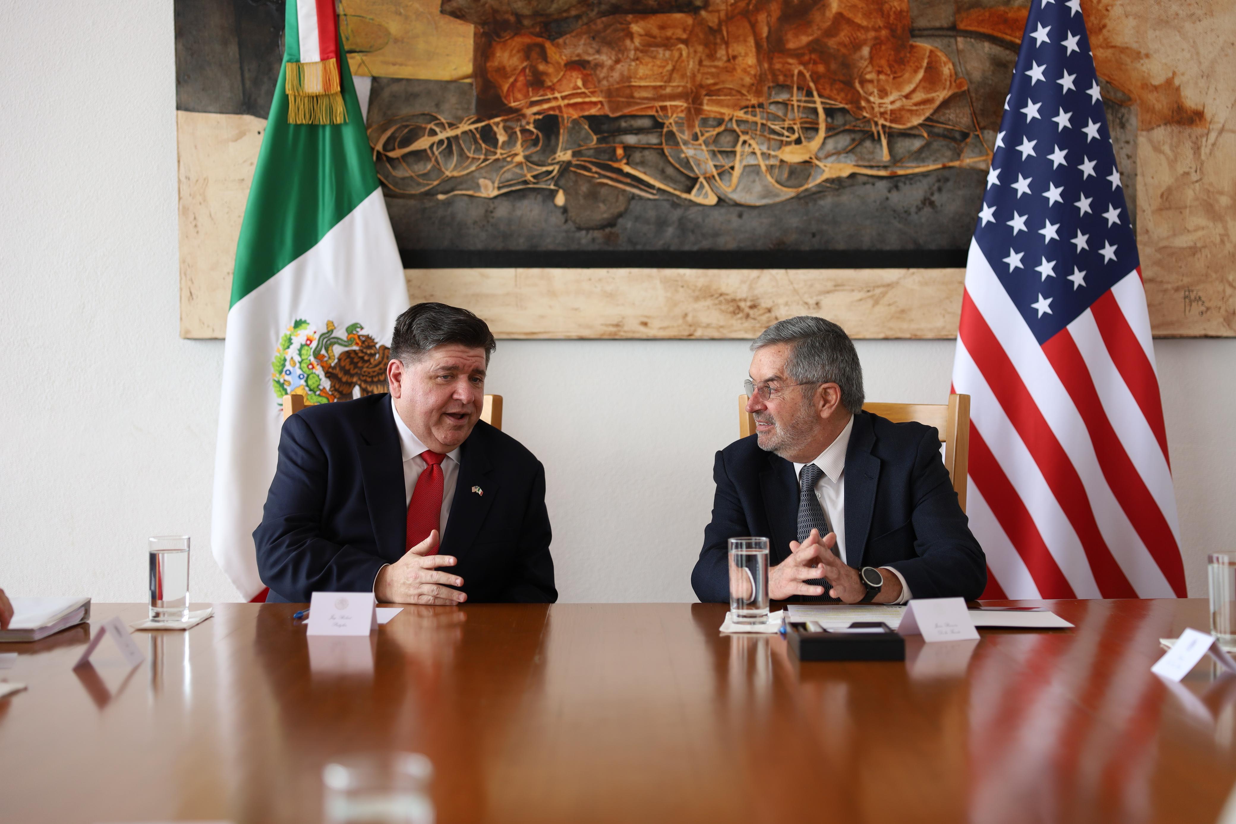 El canciller Juan Ramón de la Fuente sostuvo un encuentro con el gobernador de Illinois, J. B. Pritzker, con el objetivo de reforzar los lazos de amistad y cooperación entre México y esa entidad de Estados Unidos.