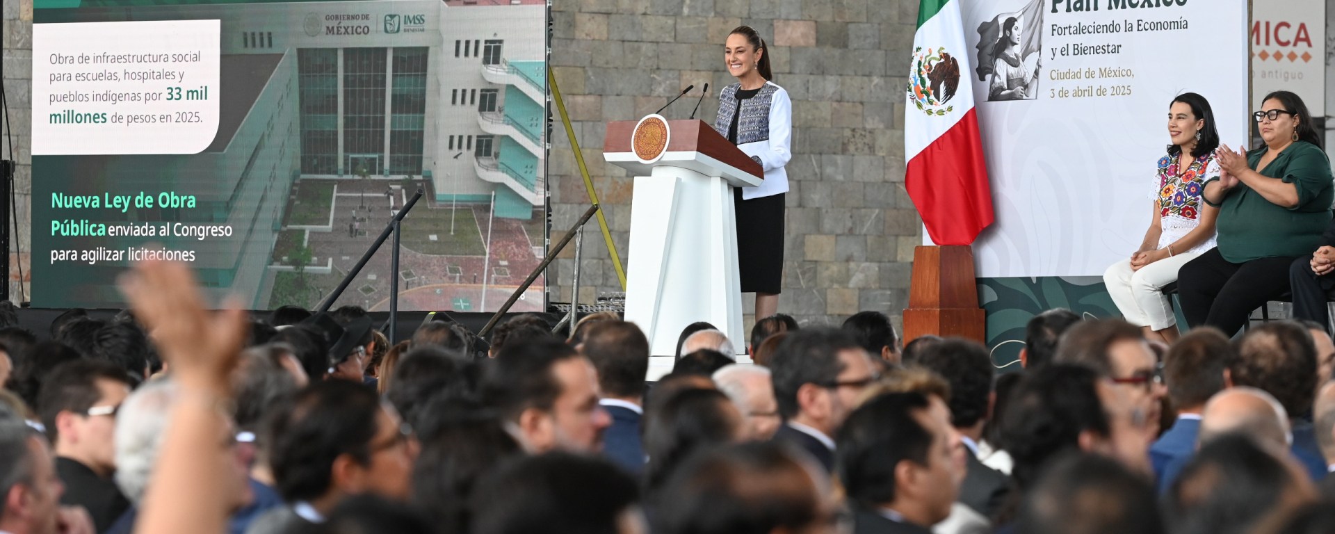 El evento se llevó a cabo el jueves 3 de abril en el Museo Nacional de Antropología, donde Sheinbaum estuvo acompañada por miembros de su gabinete, empresarios y representantes sindicales. La presentación se realizó en un contexto de tensión comercial con Estados Unidos.