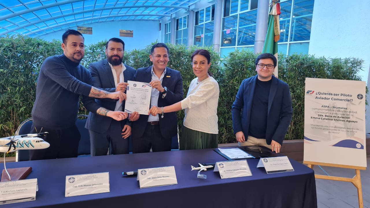 La Asociación Sindical de Pilotos Aviadores de México (ASPA) y Skymates Flight Academy, firmaron la creación de la 2da. Beca de Aviación “Emma Catalina Encinas Aguayo”, que busca apoyar el talento de hombres y mujeres jóvenes que tienen el sueño de estudiar aviación comercial.