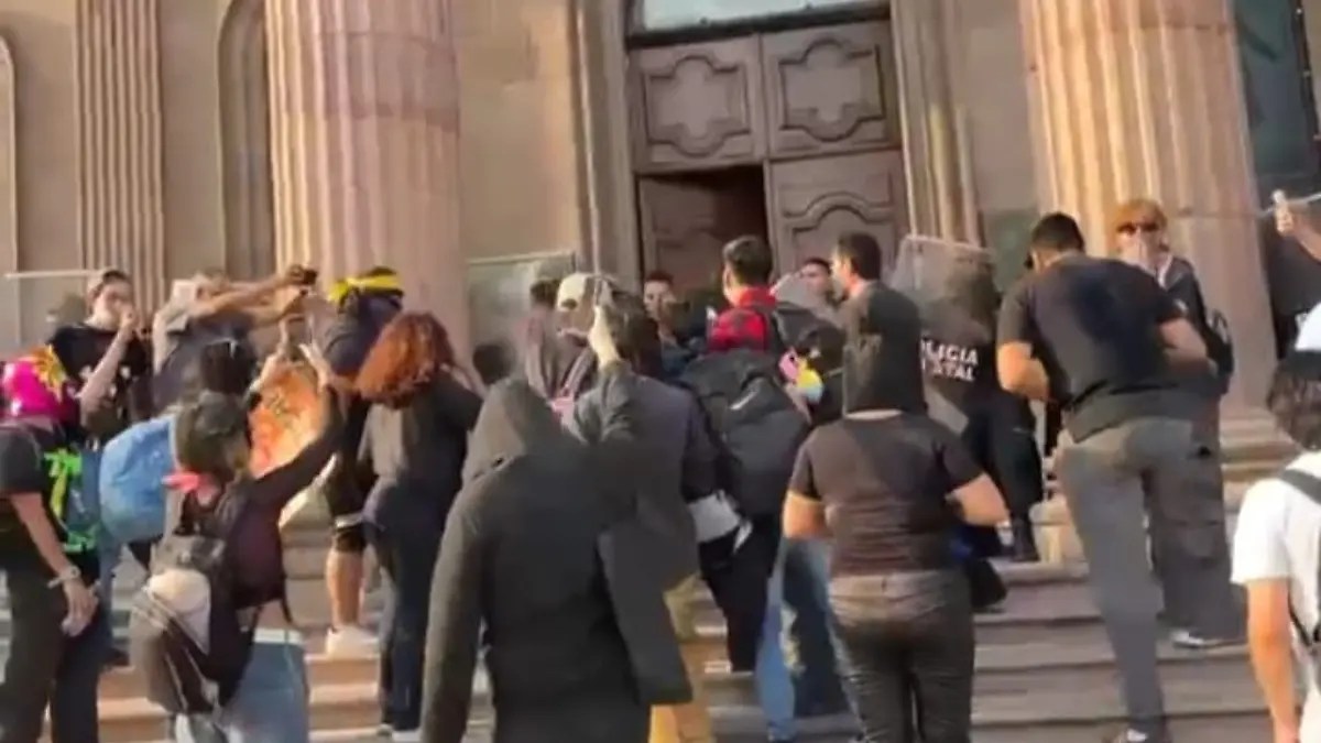 Durante la manifestación, se denunció la detención de un participante, identificado como Luis N, acusado de agredir a oficiales de la policía estatal.