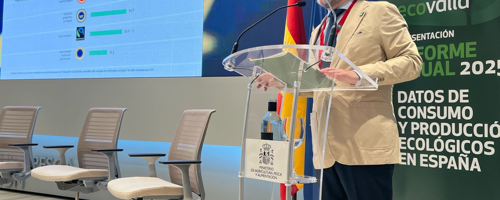 La jornada ha comenzado con la presentación del informe a cargo de Diego Granado , secretario general de Ecovalia, quien ha destacado que «en España podemos sentirnos orgullosos, porque somos líderes en producción ecológica «. Además, ha subrayado que «en estos más de 30 años de trayectoria, cada paso que damos refleja una transformación real en el sector: empezamos con 4.000 hectáreas de producción ecológica y hoy superamos los 3 millones».