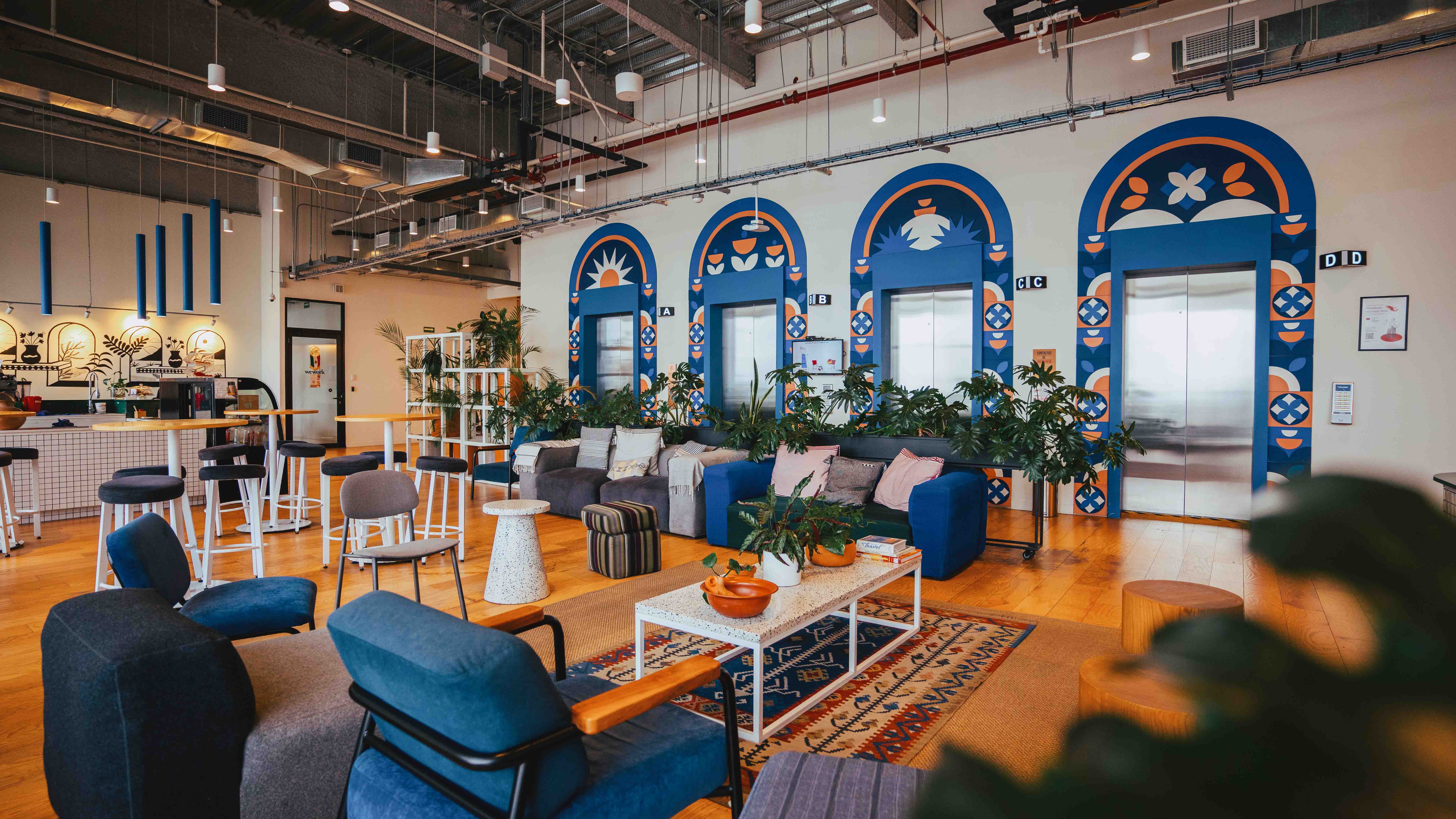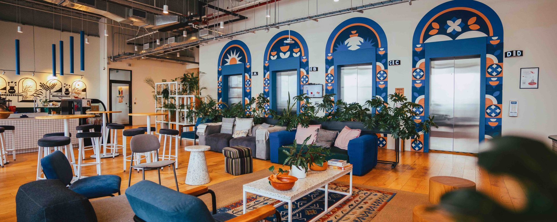 Además, cada espacio incorpora elementos únicos que celebran la cultura y creatividad locales. Uno de los sellos más distintivos de WeWork es su apuesta por el arte como medio para generar pertenencias. Murales, esculturas, gráficos y neones creados por artistas locales, se integran a cada sede como un recordatorio de que el trabajo puede ser también un acto creativo.