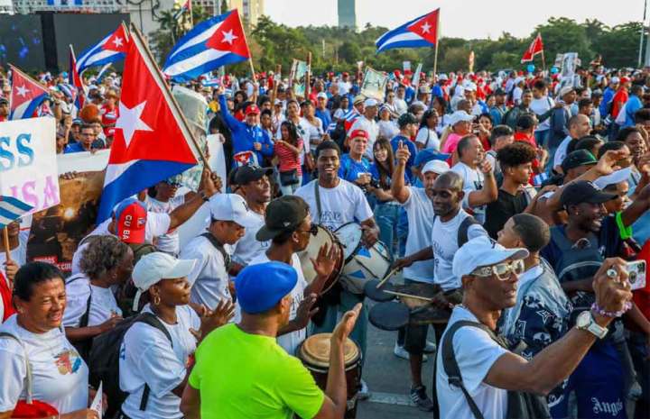 Como muestra del apoyo mundial a Cuba, unos mil delegados internacionales de más de 30 países estuvieron en las plazas junto al pueblo para condenar el cerco económico, comercial y financiero. –sn–