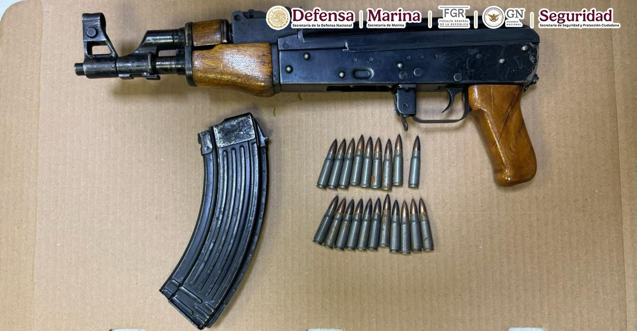 En los operativos fueron detenidos Agustín “N”, otro hombre y una mujer, quienes se encontraban al interior de los inmuebles intervenidos. Durante la acción, se aseguró un arma de fuego larga, una corta, cartuchos útiles, dinero en efectivo y libretas.