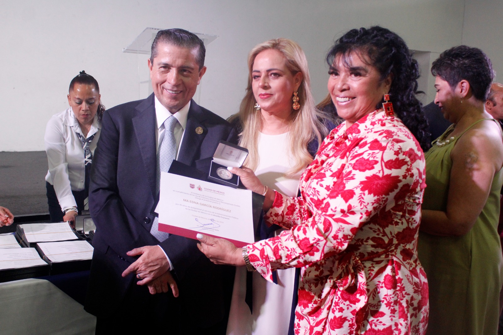 Acompañado por su gabinete, Giovani Gutiérrez recordó que estos reconocimientos -que también se entregan a nombre del gobierno de la ciudad de México- son un pequeño tributo al esfuerzo que todos los días hacen las y los servidores públicos para poner su mejor esfuerzo en las actividades diarias para hacer de esta la mejor alcaldía de la ciudad de México.