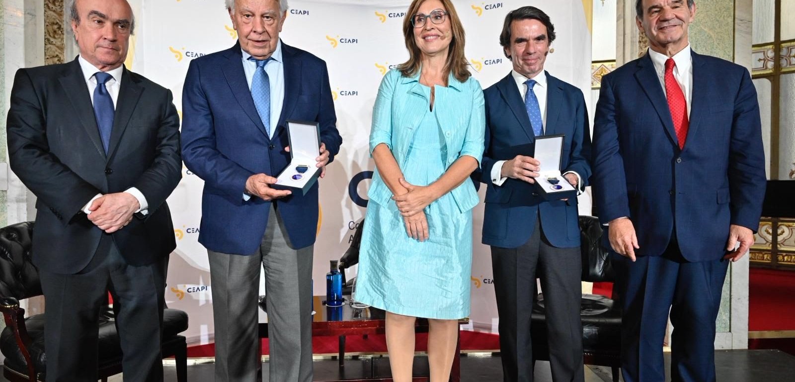 El Consejo Empresarial Alianza por Iberoamérica (CEAPI) entregó en Madrid las Medallas de Honor a los expresidentes del Gobierno de España, Felipe González (1982-1996) y José María Aznar (1996-2004), en reconocimiento a su labor en el fortalecimiento de las relaciones entre España y los países iberoamericanos, así como su impulso a los avances democráticos, económicos y sociales en la región.
