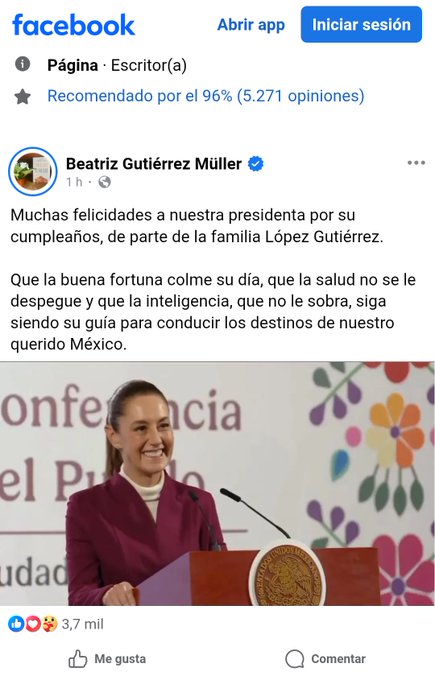 En dicha publicación, Gutiérrez Müller escribió: “Felicidades a la presidente Claudia Sheinbaum. Que la inteligencia, que no le sobra, siga siendo su guía”, lo que generó diversas interpretaciones entre usuarios de redes sociales.