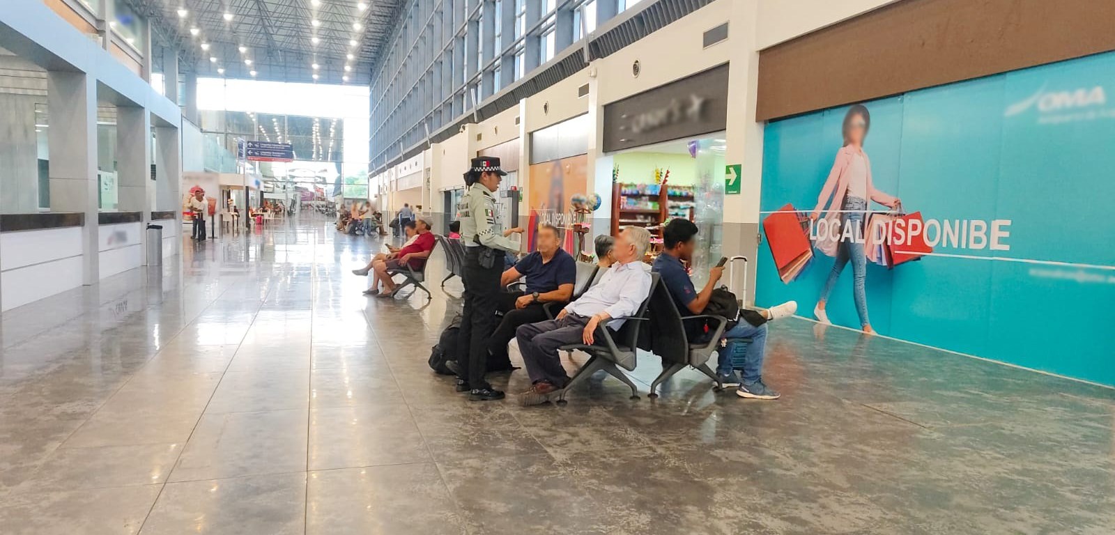 El personal de esta fuerza de seguridad pública recorre pasillos y salas de espera de la terminal aérea, donde tiene contacto con los pasajeros de vuelos nacionales e internacionales que arriban o parten a diferentes destinos desde este puerto.
