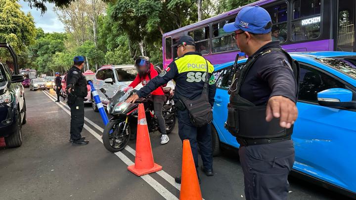 Con el objetivo de inhibir posibles actos constitutivos de delitos o infracciones de tránsito, la alcaldía Coyoacán, en coordinación con la Secretaría de Seguridad Ciudadana (SSC), la Secretaría de Marina-Armada de México (Semar) y la Guardia Nacional (GN), han puesto en práctica dispositivos de seguridad para revisión de motocicletas en distintos puntos de la demarcación.