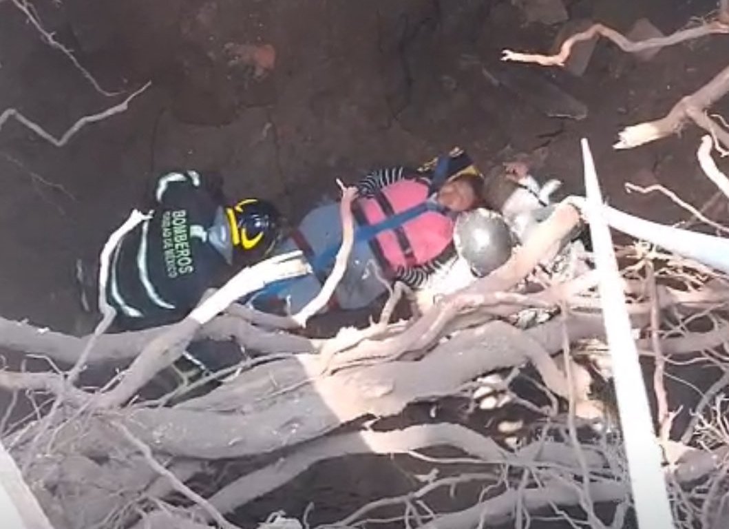 Una mujer cayó en un socavón y fue trasladada a un hospital en la Cdmx. Rescate inmediato de bomberos.
