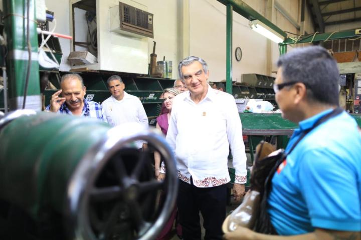 Como parte de su extenso recorrido en Mier, Villarreal Anaya visitó Don Cuco Boots, un establecimiento referente de esta ciudad en la fabricación de botas vaqueras elaboradas artesanalmente. –sn–