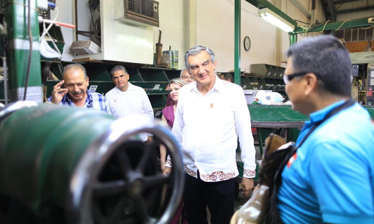 Como parte de su extenso recorrido en Mier, Villarreal Anaya visitó Don Cuco Boots, un establecimiento referente de esta ciudad en la fabricación de botas vaqueras elaboradas artesanalmente. –sn–