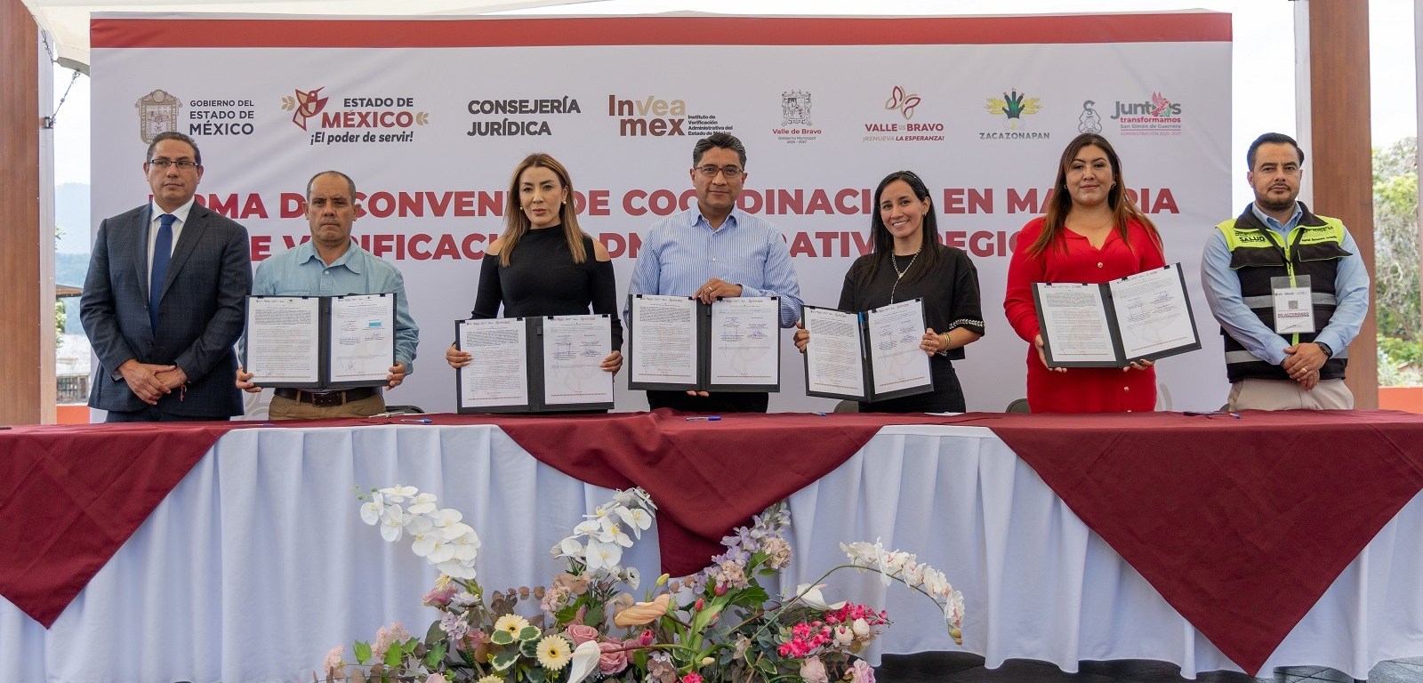 El gobierno del estado de México firmó convenios de colaboración con los municipios de Valle de Bravo, San Simón de Guerrero, Zacazonapan y Villa Victoria en materia de verificación administrativa, con lo que ya son 50 los ayuntamientos que se suman a esta estrategia para consolidar un modelo económico basado en la transparencia y el cumplimiento de la normatividad.