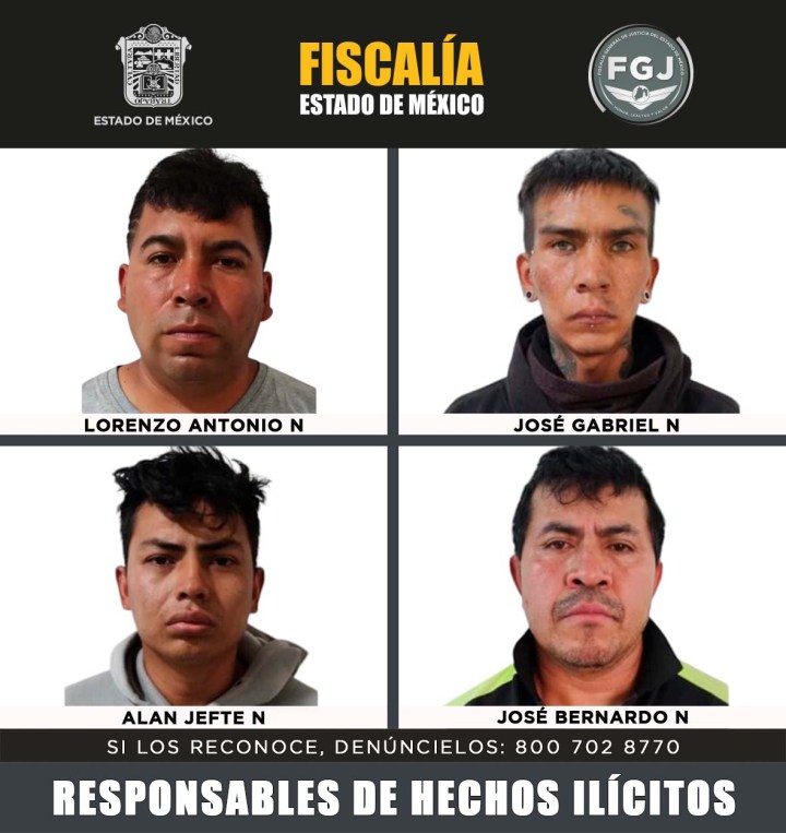 La Fiscalía General de Justicia del Estado de México (FGJEM) informó que se obtuvo sentencia condenatoria de 50 años de prisión en contra de José Bernardo Rodríguez Martínez, Lorenzo Antonio Hernández Sánchez, Alan Jefte Rodríguez Salazar y José Gabriel García Vázquez por el delito de secuestro exprés con fines de robo.