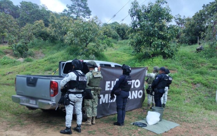 El hallazgo se registró cuando personal de ambas instituciones, junto con elementos de la Guaria Civil Estatal, realizaba recorridos de seguridad y prevención del delito en la localidad de Cieneguilla, en el municipio de Uruapan, donde tuvieron a la vista una camioneta estacionada, con varias personas a bordo.