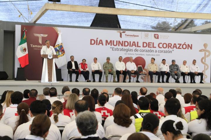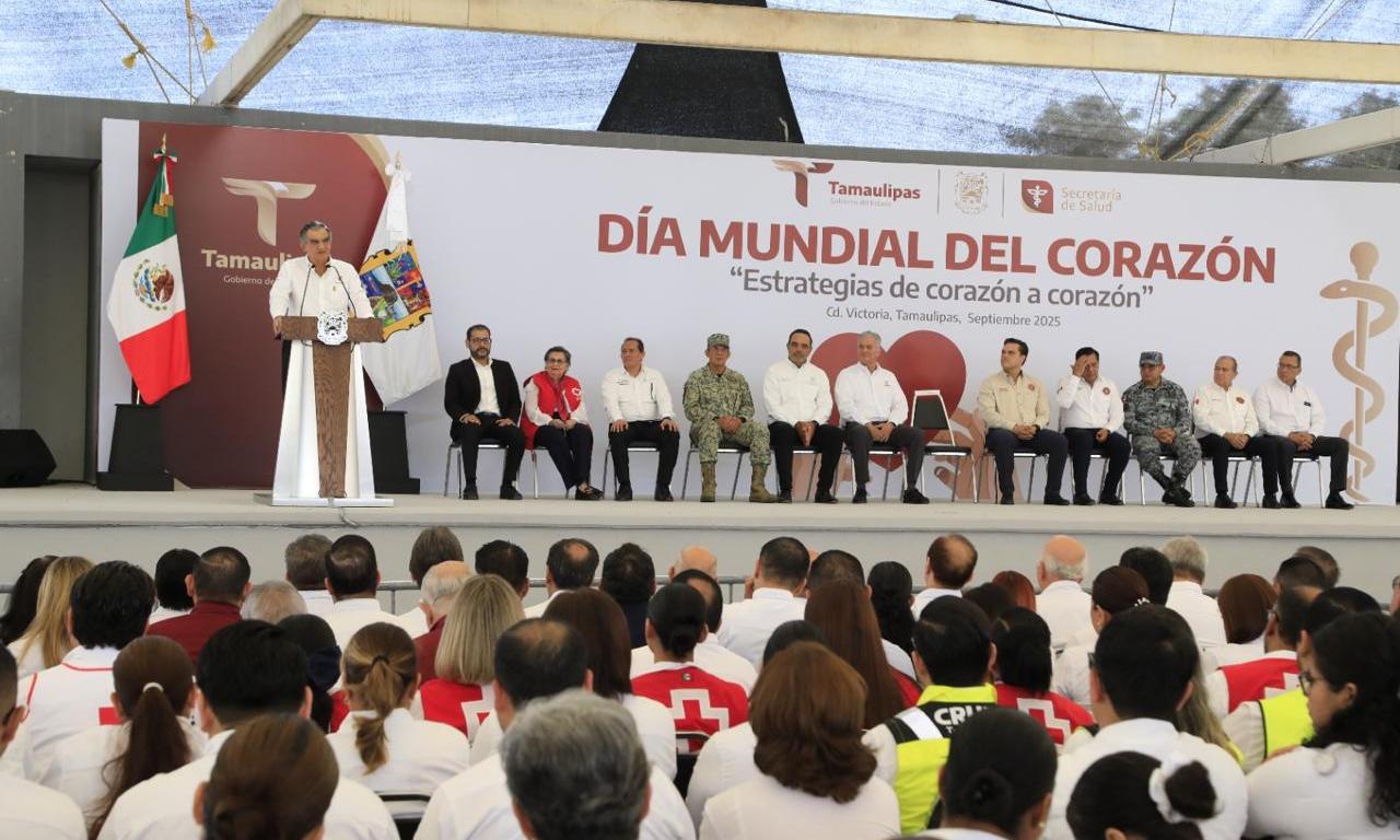Ciudad Victoria, Tamaulipas. – En el marco de la conmemoración del Día Mundial del Corazón, el gobernador Américo Villarreal Anaya convocó a todo el personal del sector salud a ser educadores de las y los tamaulipecos y reforzar el cuidado de los factores de riesgo promoviendo estilos de vida saludables, lo que permitirá continuar la reducción de la mortalidad de pacientes hospitalizados por infarto agudo de miocardio, que en lo que va de la administración ha disminuido en un 25 por ciento.