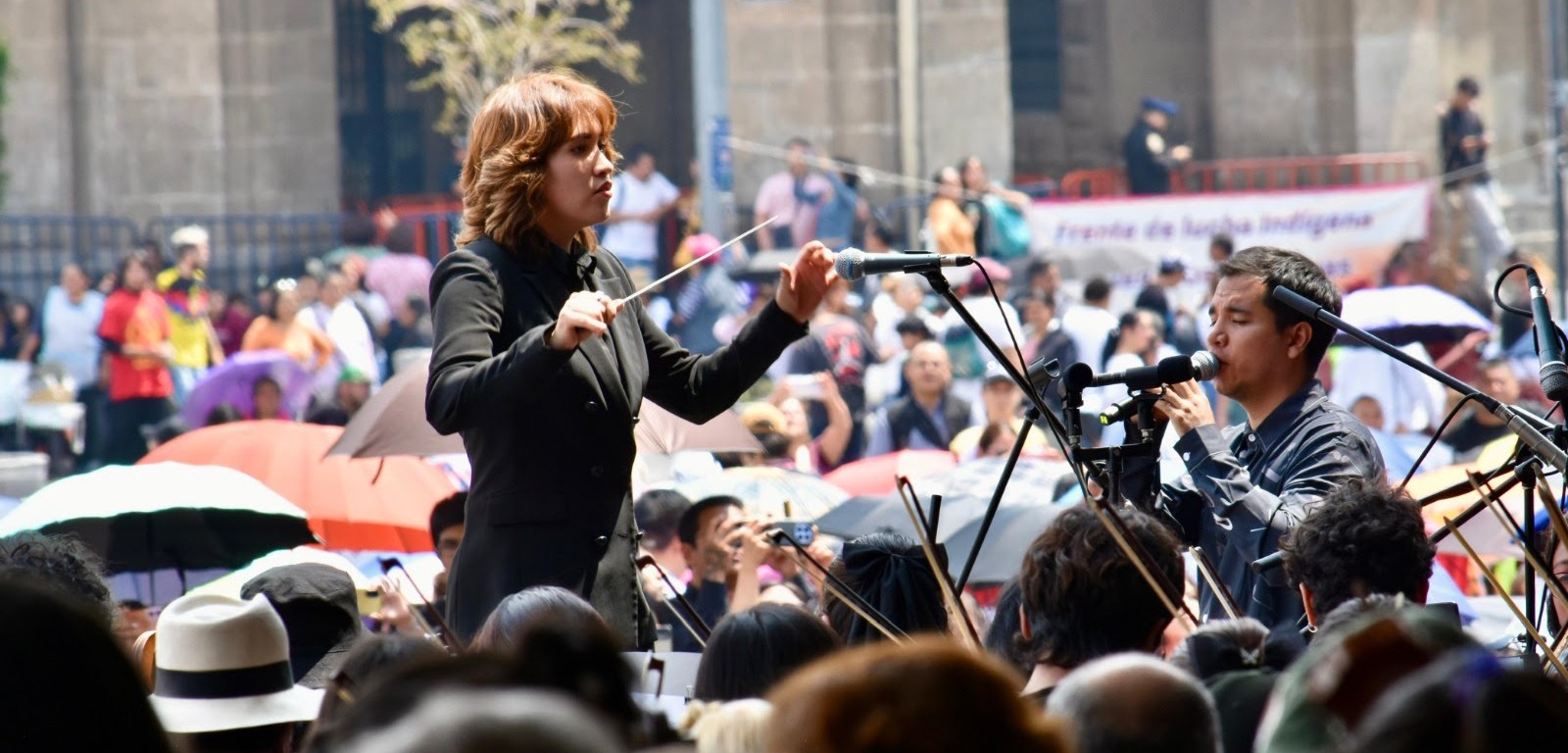 Con 2,600 integrantes en escena, la maestra Lizzi Ceniceros organizó cada sección de la orquesta. Antes del primer ensayo general, afirmó que deseaba que “temblara el corazón de la ciudad” con cada acorde.
