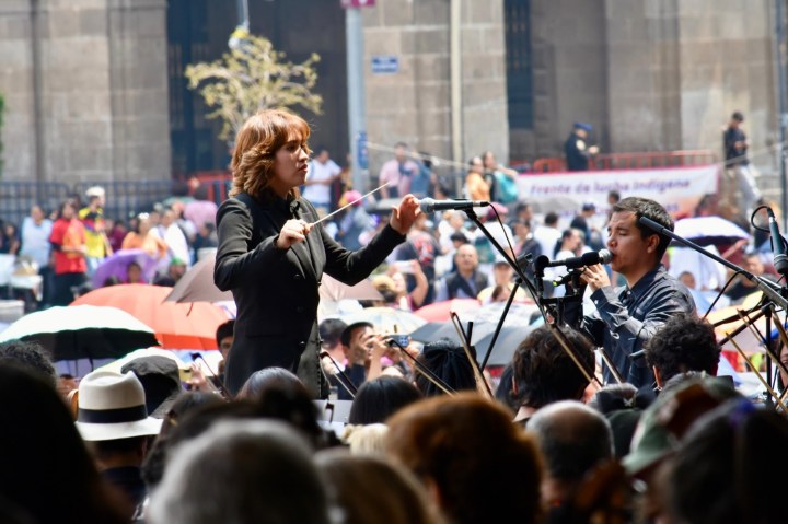 Posteriormente, la maestra Irán Quiróz dirigió el “Himno a la Alegría” de Beethoven, seguido por fragmentos de “Carmen” de Bizet. Cada interpretación arrancó ovaciones y convirtió el Zócalo en un auditorio al aire libre de magnitud inédita. –sn–