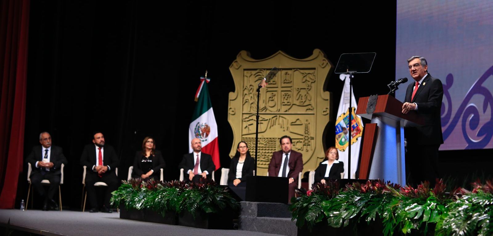 Al hacer un recuento de los compromisos cumplidos, a tres años del inicio de su mandato, acompañado por la presidenta del DIF estatal, doctora María de Villarreal, así como de los representantes de todos los sectores productivos del estado, legisladores federales y locales, integrantes del gabinete estatal, mandos de las Fuerzas Armadas, alcaldes y alcaldesas, el mandatario tamaulipeco puntualizó que la participación de nuestro gran estado en el concierto nacional se sustenta en la visión de la nueva ideología política del humanismo mexicano.