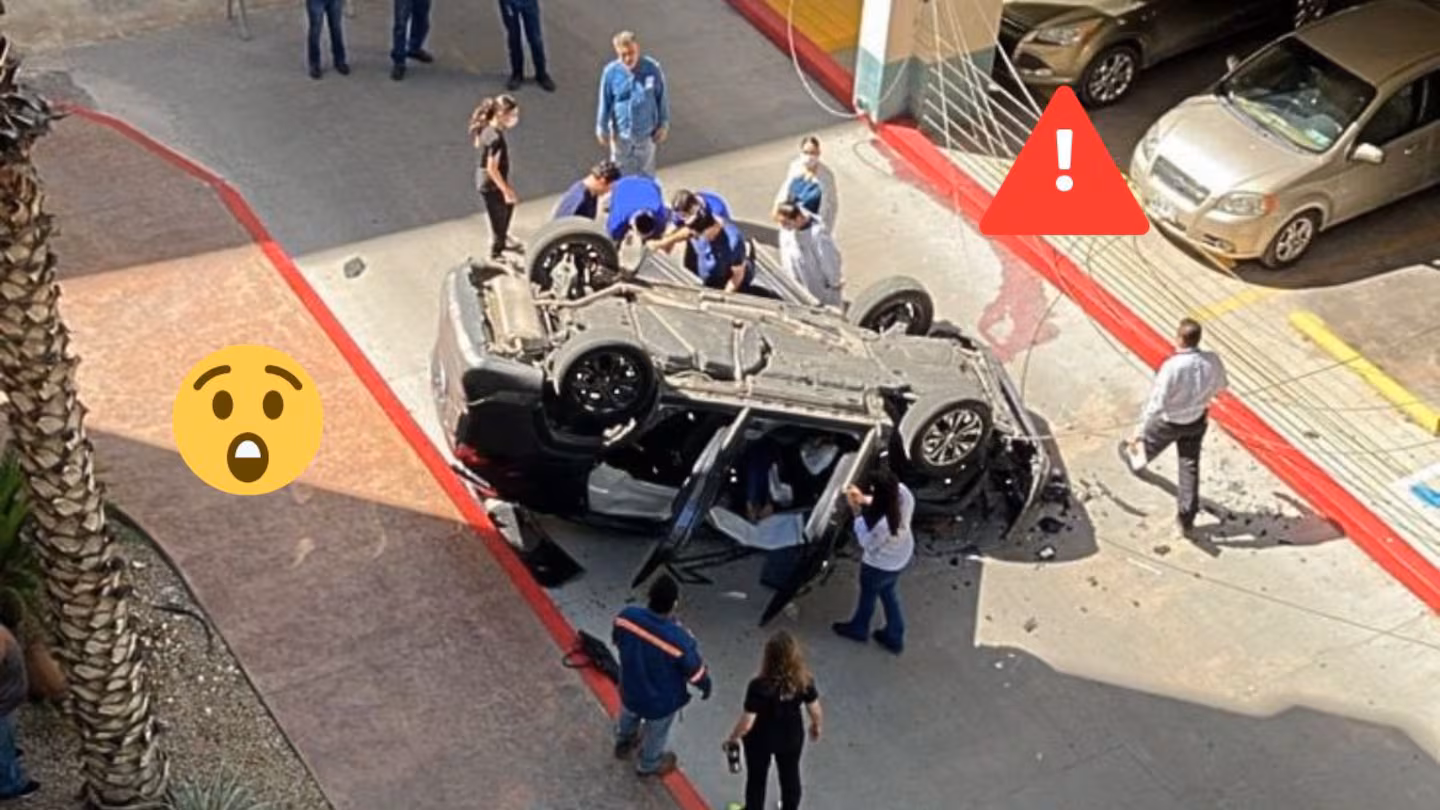 Un aparatoso accidente ocurrió en Hermosillo, Sonora, cuando una mujer de 64 años cayó con su auto desde el segundo piso del estacionamiento del Hospital San José. El hecho sucedió luego de que confundió el freno con el acelerador.
