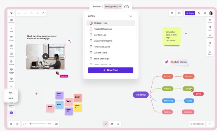 Con este diseño, Vani respondió a una de las mayores dificultades de los equipos distribuidos: realizar lluvias de ideas efectivas. Las pizarras digitales integradas permitieron procesos creativos más organizados, fluidos y accesibles a distancia.