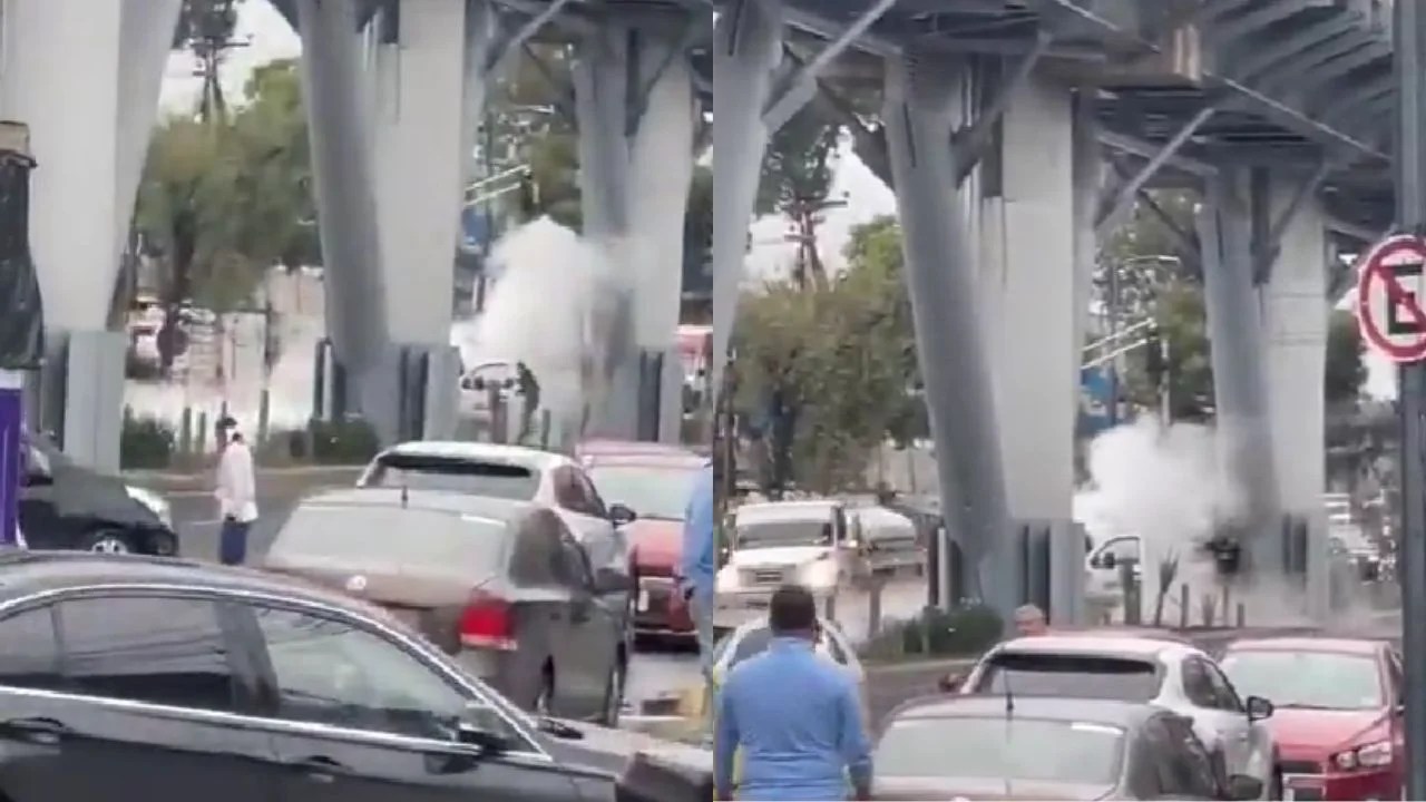 En redes sociales, la Secretaría de Gestión Integral de Riesgos y Protección Civil (SGIRPC) informó que la fuga se originó tras la ruptura de una manguera debido al impacto entre la pipa y un automóvil.