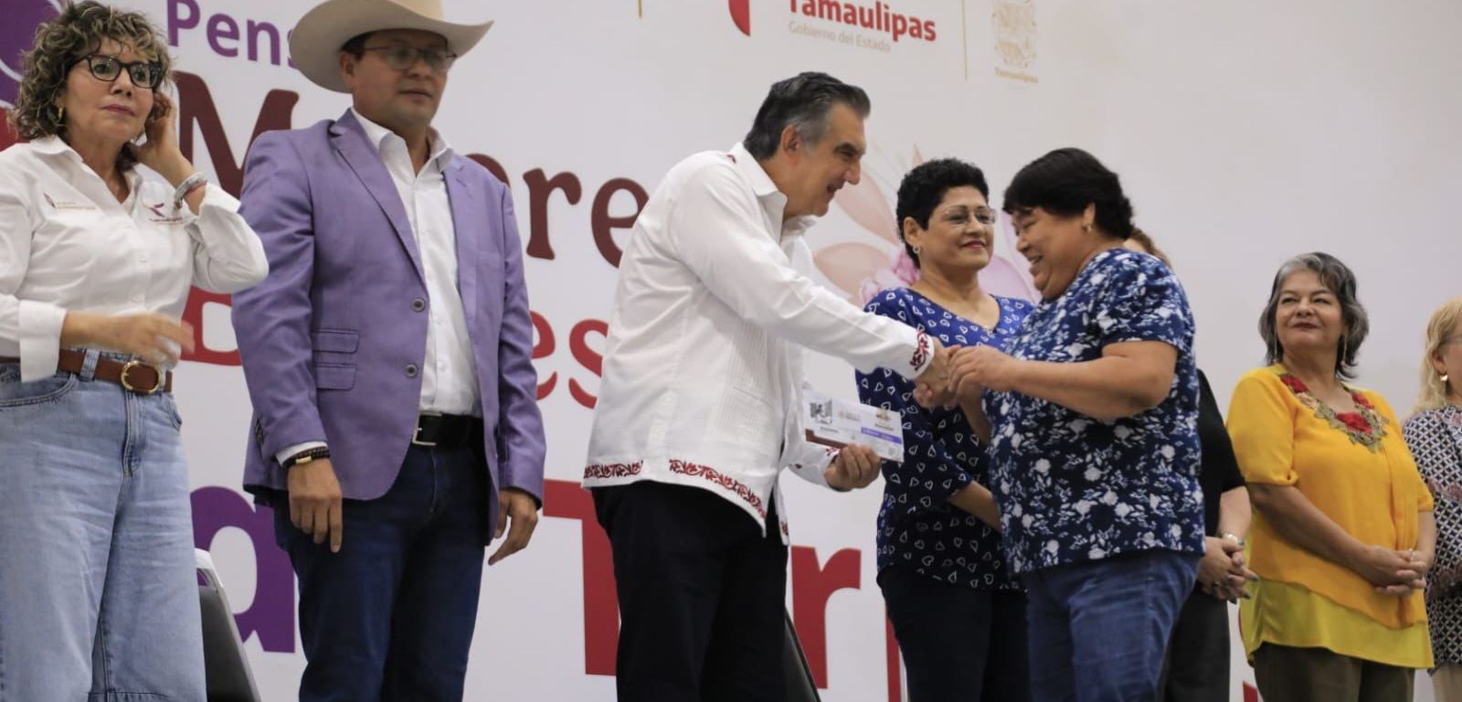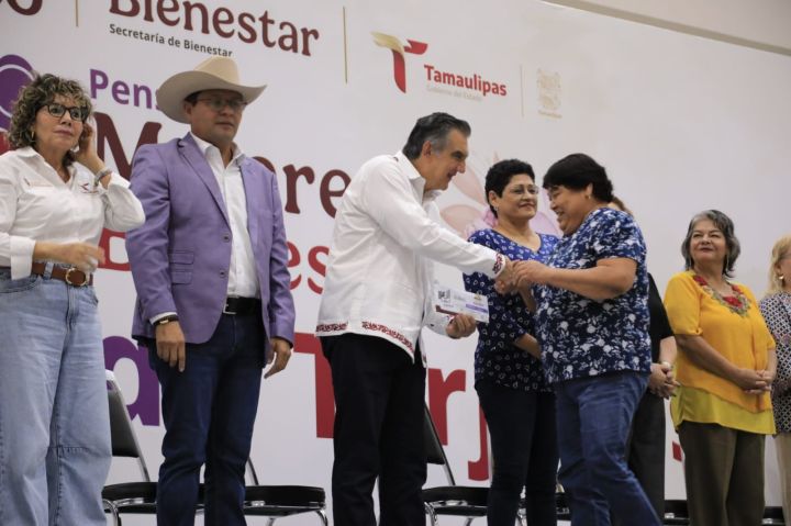 Durante la entrega simbólica a 30 de las dos mil beneficiarias presentes, acompañado por Luis Lauro Reyes Rodríguez, delegado de Programas Federales para el Desarrollo en Tamaulipas, y de Silvia Casas González, secretaria de Bienestar Social, el gobernador mencionó que, tal como lo ha señalado la presidenta, este apoyo es un reconocimiento a la contribución que durante muchos años han tenido las mujeres como protectoras de la familia y protectoras de los valores más valiosos de la formación e integración de la sociedad.